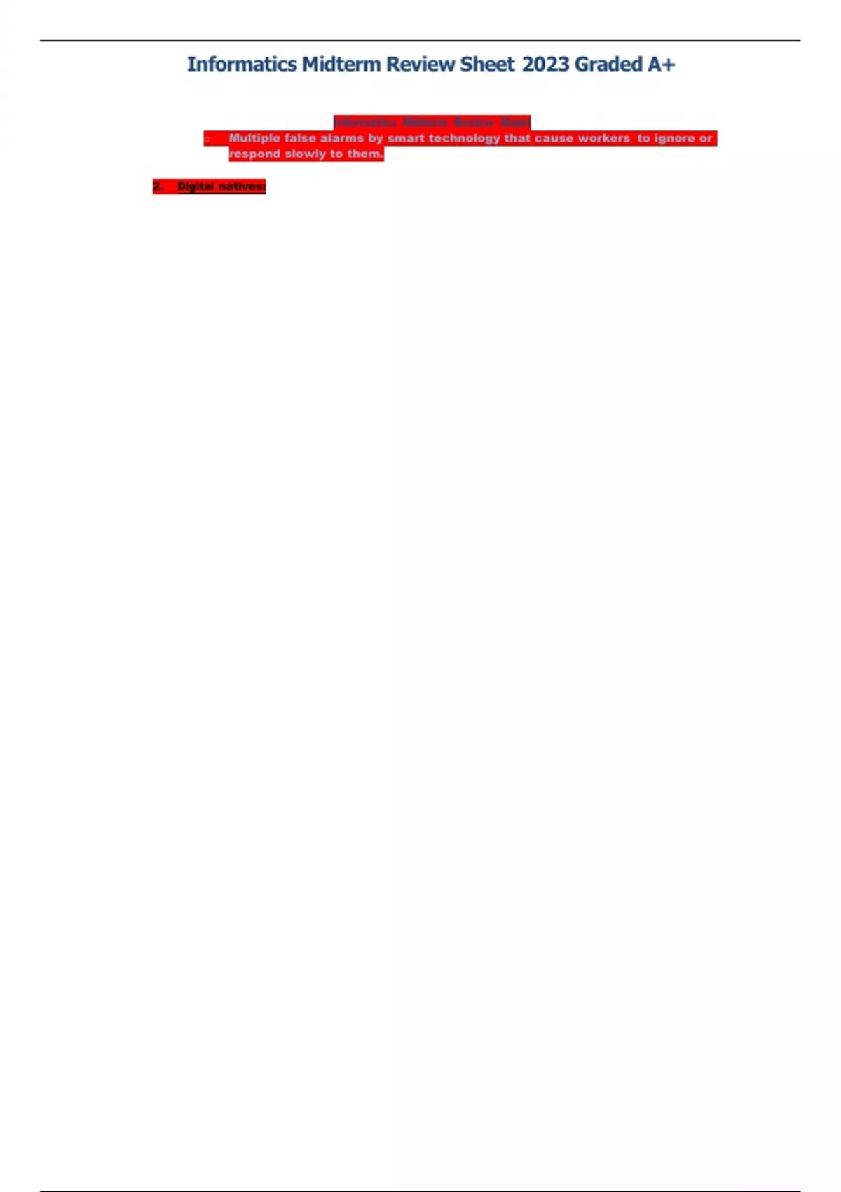 , Informatics Midterm Review Sheet 2023 Graded A+