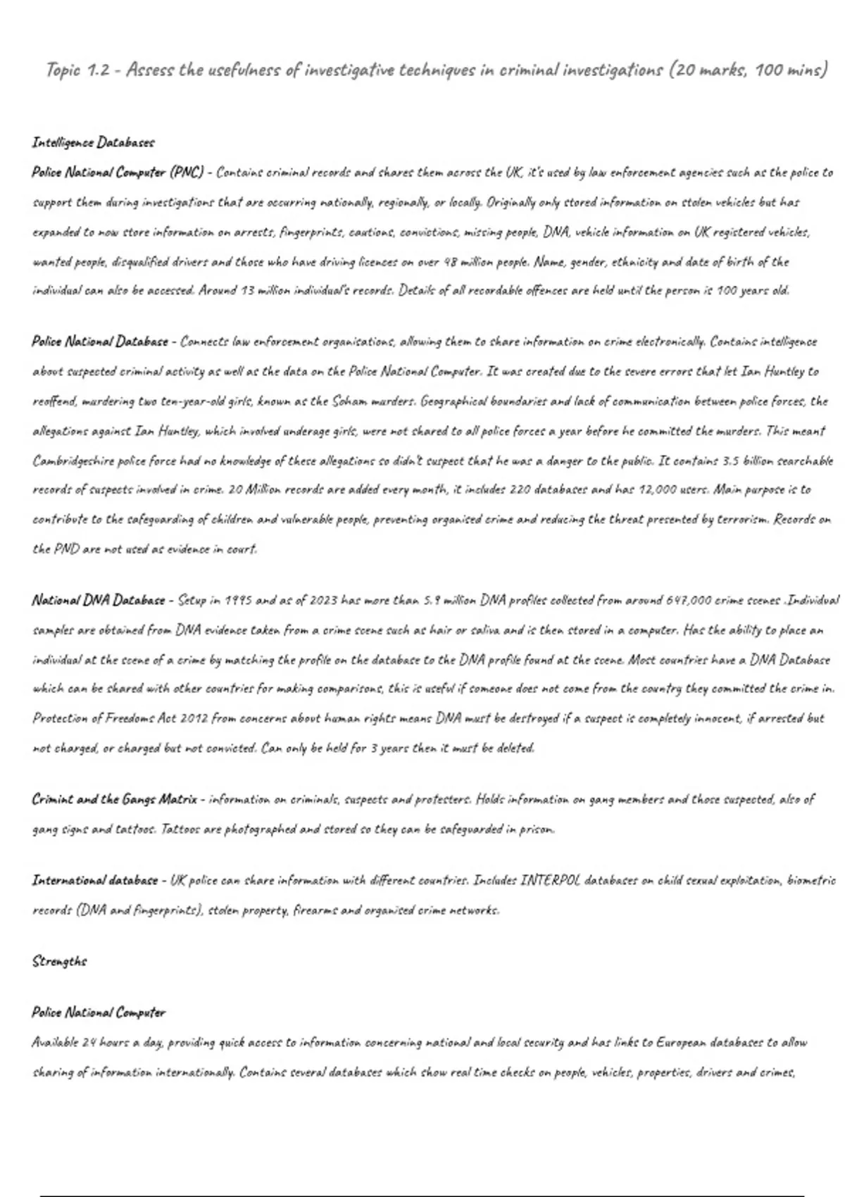 Topic 1.2 - Assess the usefulness of investigative techniques in criminal investigations (20 marks, 100 mins)