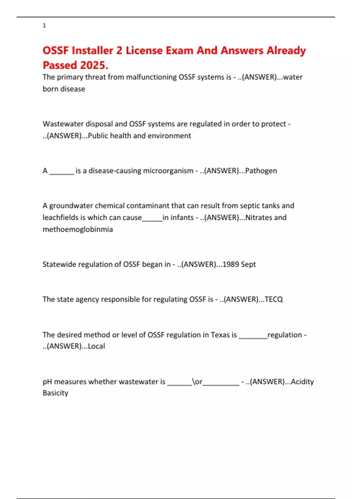 OSSF Installer 2 License Exam And Answers Already Passed 2025.
