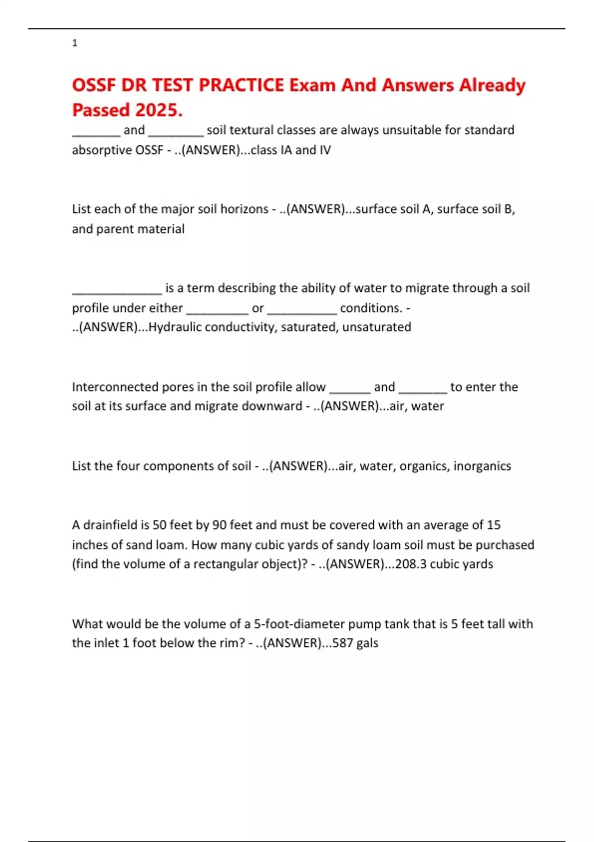 OSSF DR TEST PRACTICE Exam And Answers Already