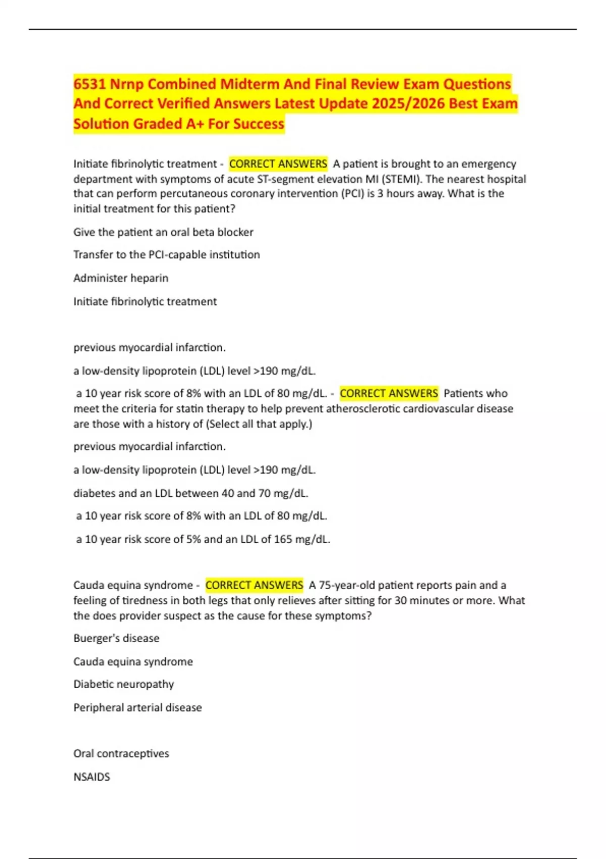 Cauda equina syndrome - CORRECT ANSWERS A 75-year-old patient reports pain and a
