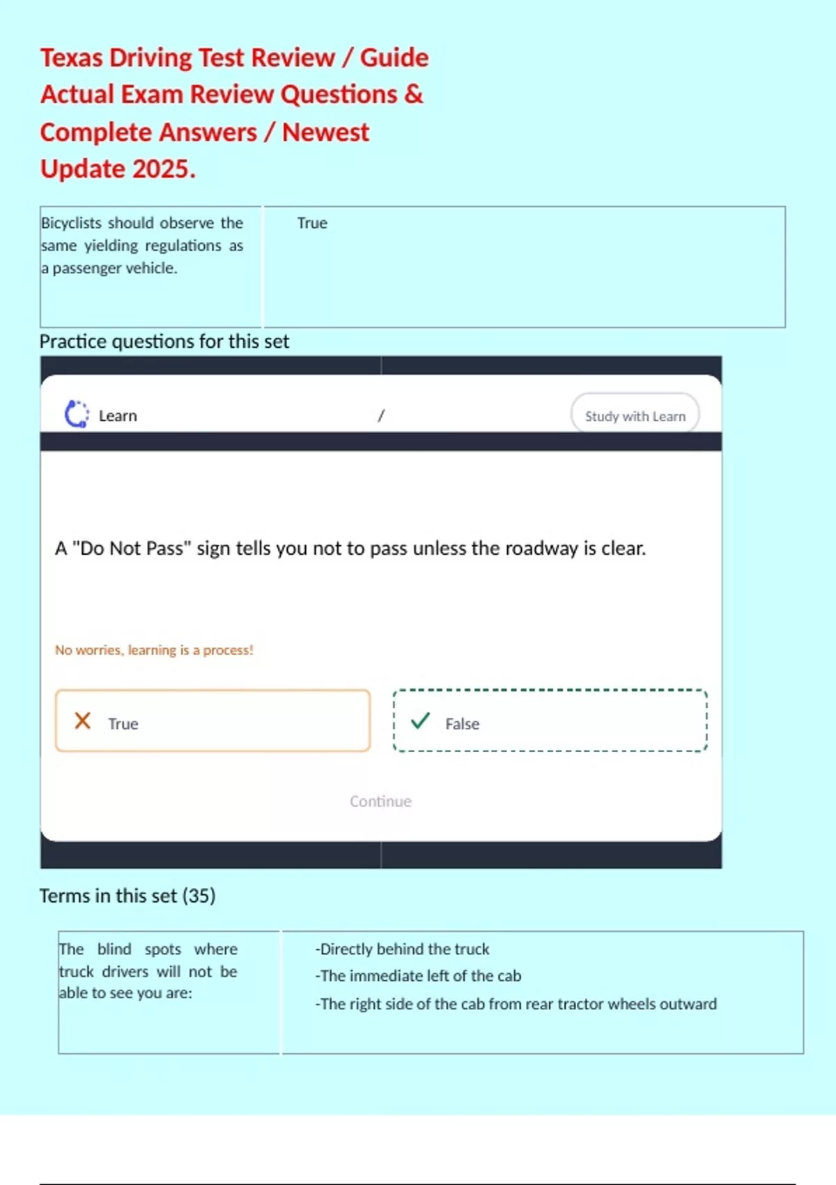 , A "Do Not Pass" sign tells you False