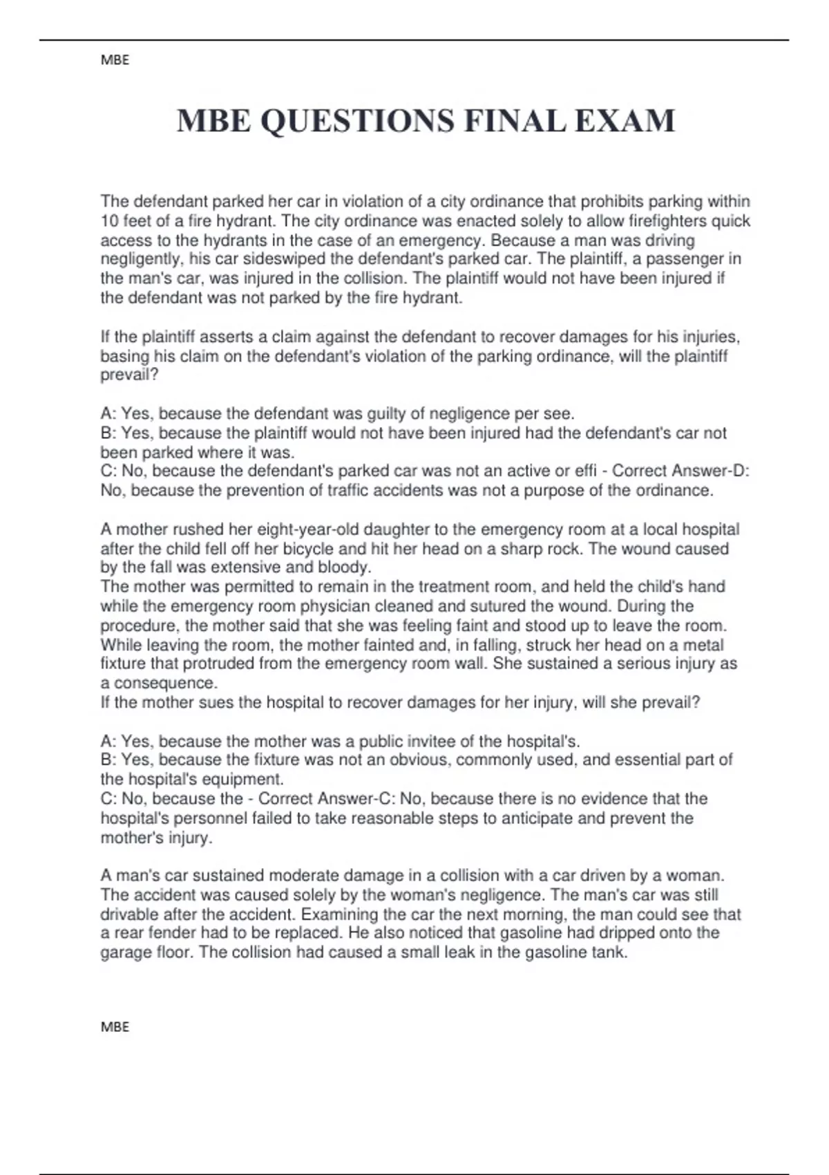 MBE QUESTIONS FINAL EXAM