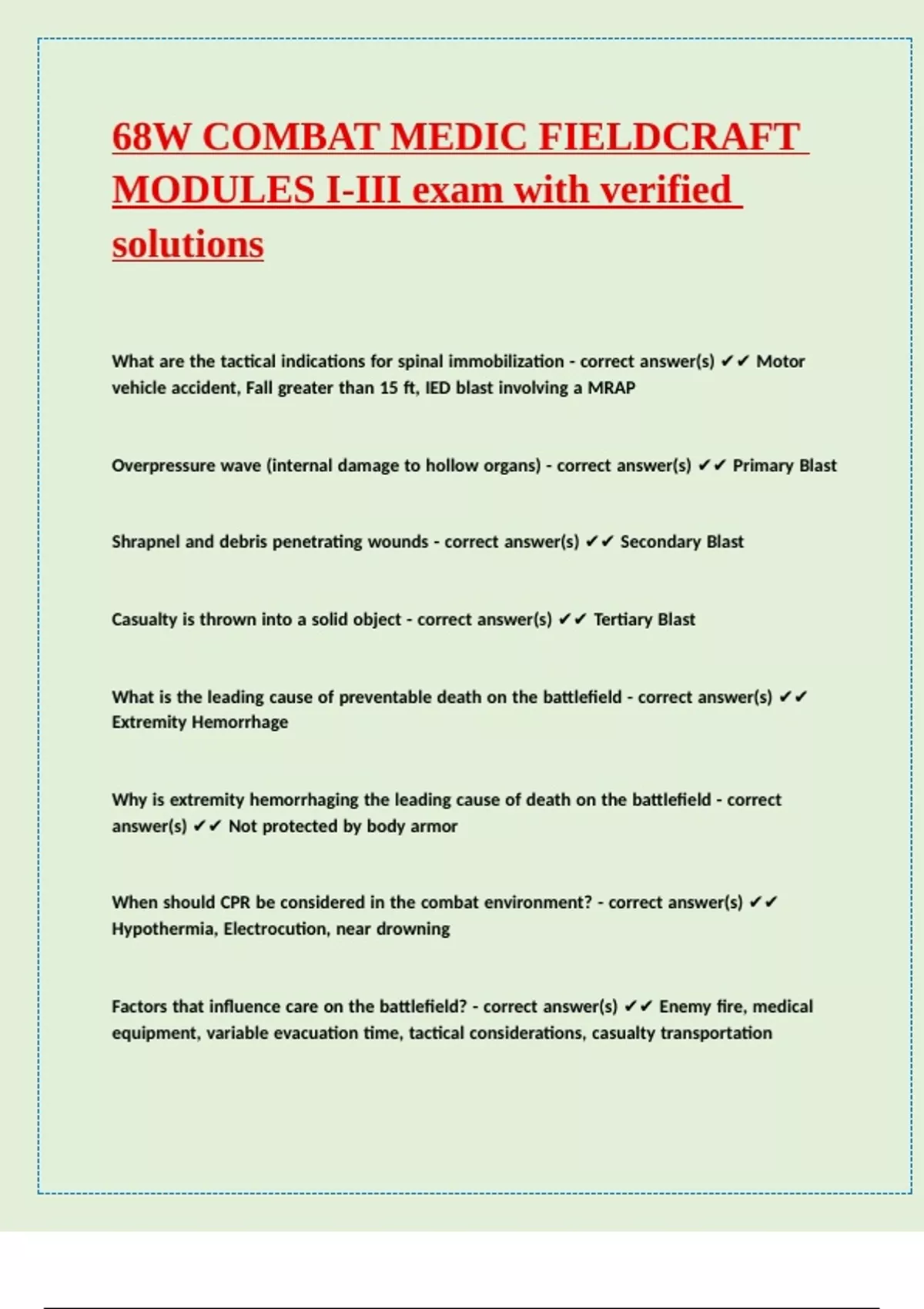 When should CPR be considered in the combat environment? - correct answer(s) ✔✔