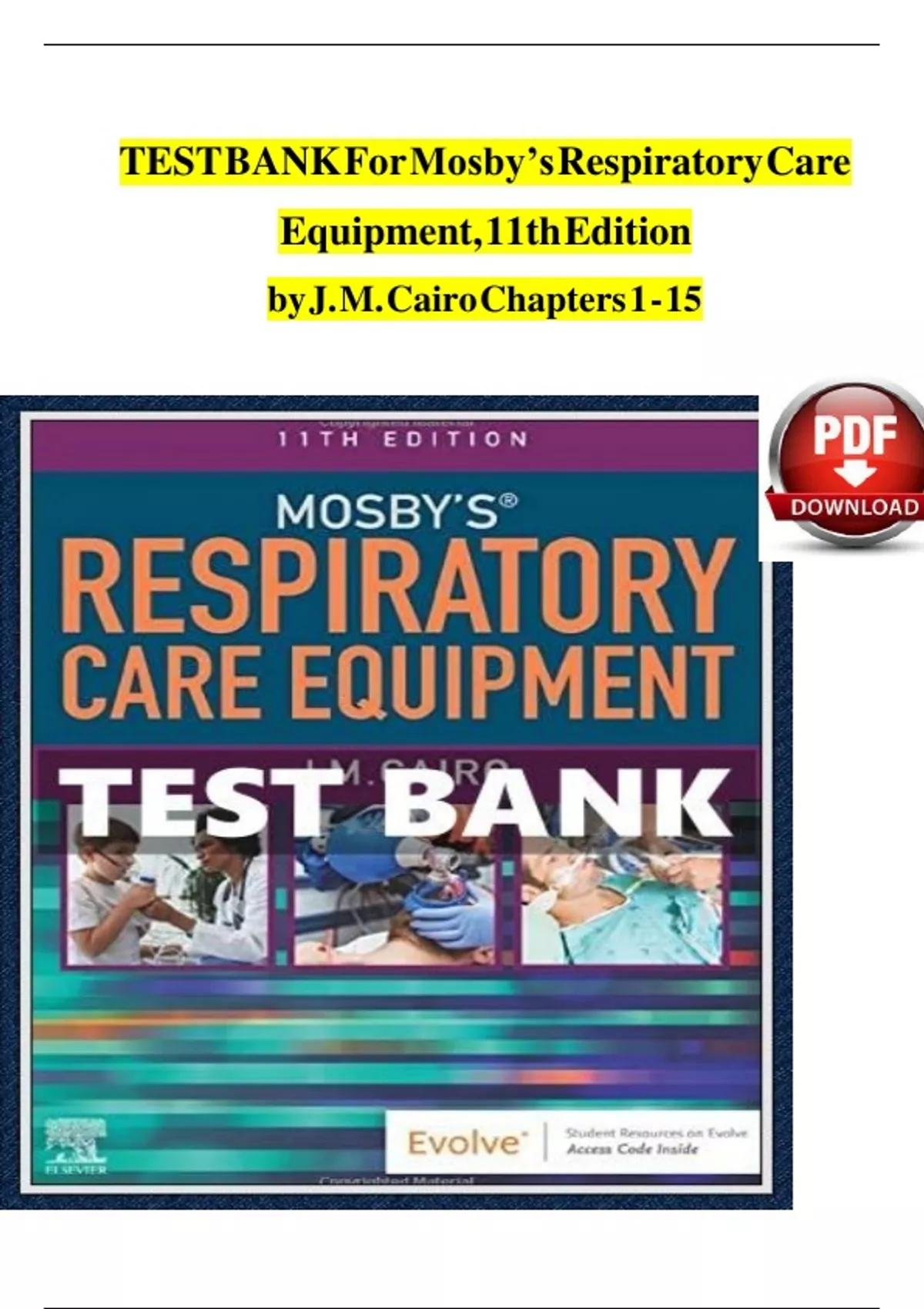 Test Bank For Mosby's Respiratory Care Equipment 11th Edition by J. M. Cairo, All Chapters Included