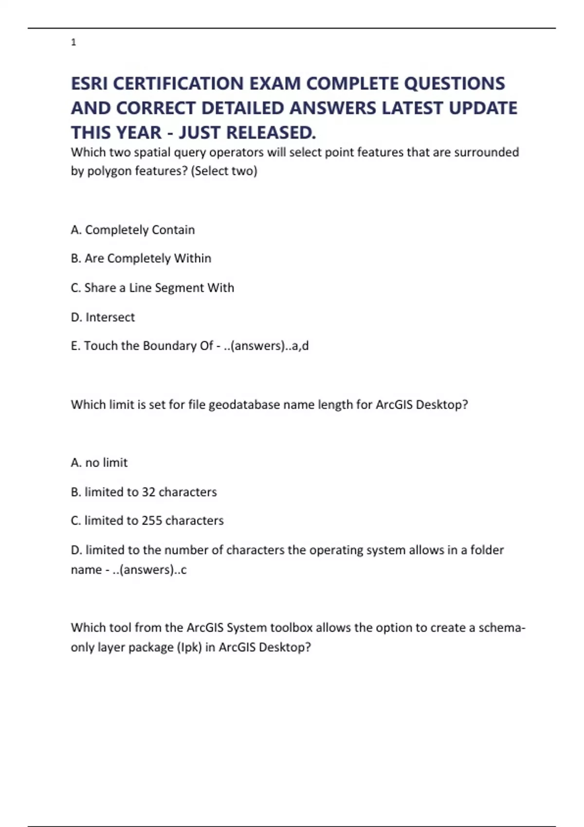 ESRI CERTIFICATION EXAM COMPLETE QUESTIONS