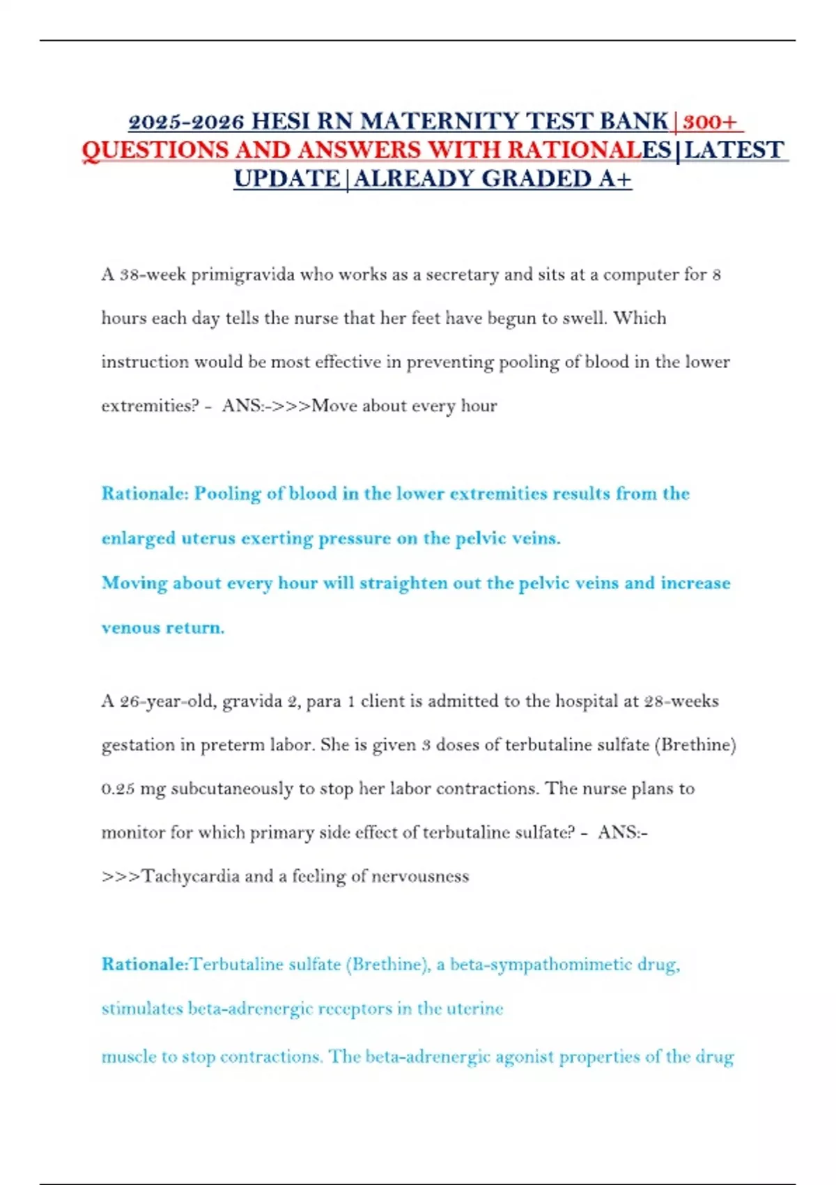 HESI RN MATERNITY TEST BANK|300+ QUESTIONS AND ANSWERS WITH RATIONALES|LATEST UPDATE|ALREADY GRADED A+
