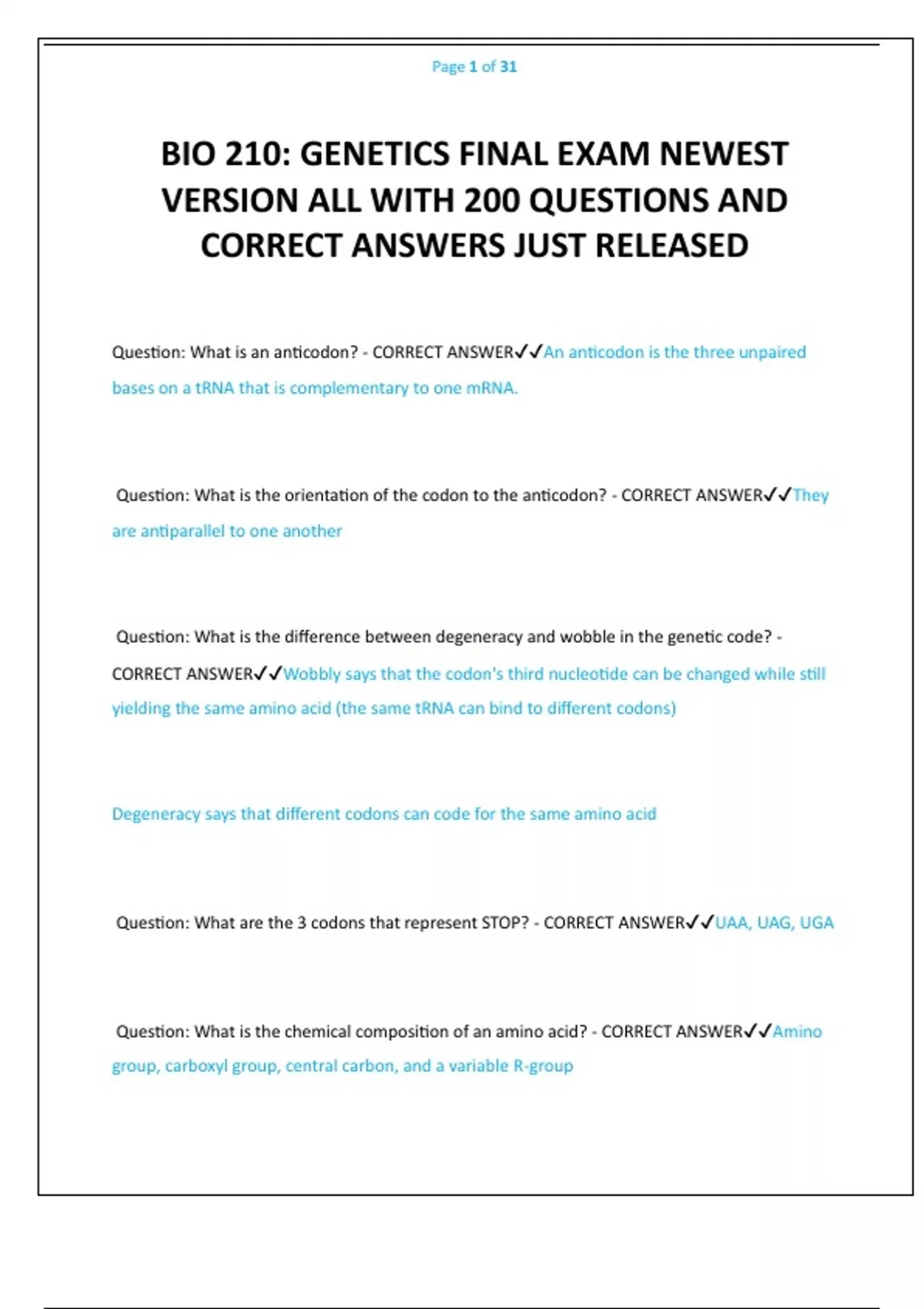 BIO 210: GENETICS FINAL EXAM NEWEST