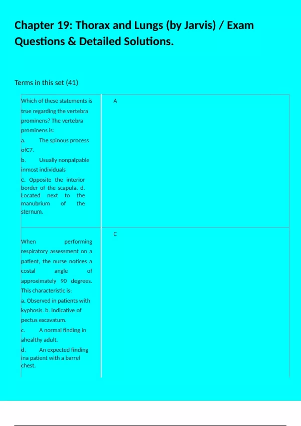 Chapter 19: Thorax and Lungs (by Jarvis) / Exam Questions & Detailed Solutions.