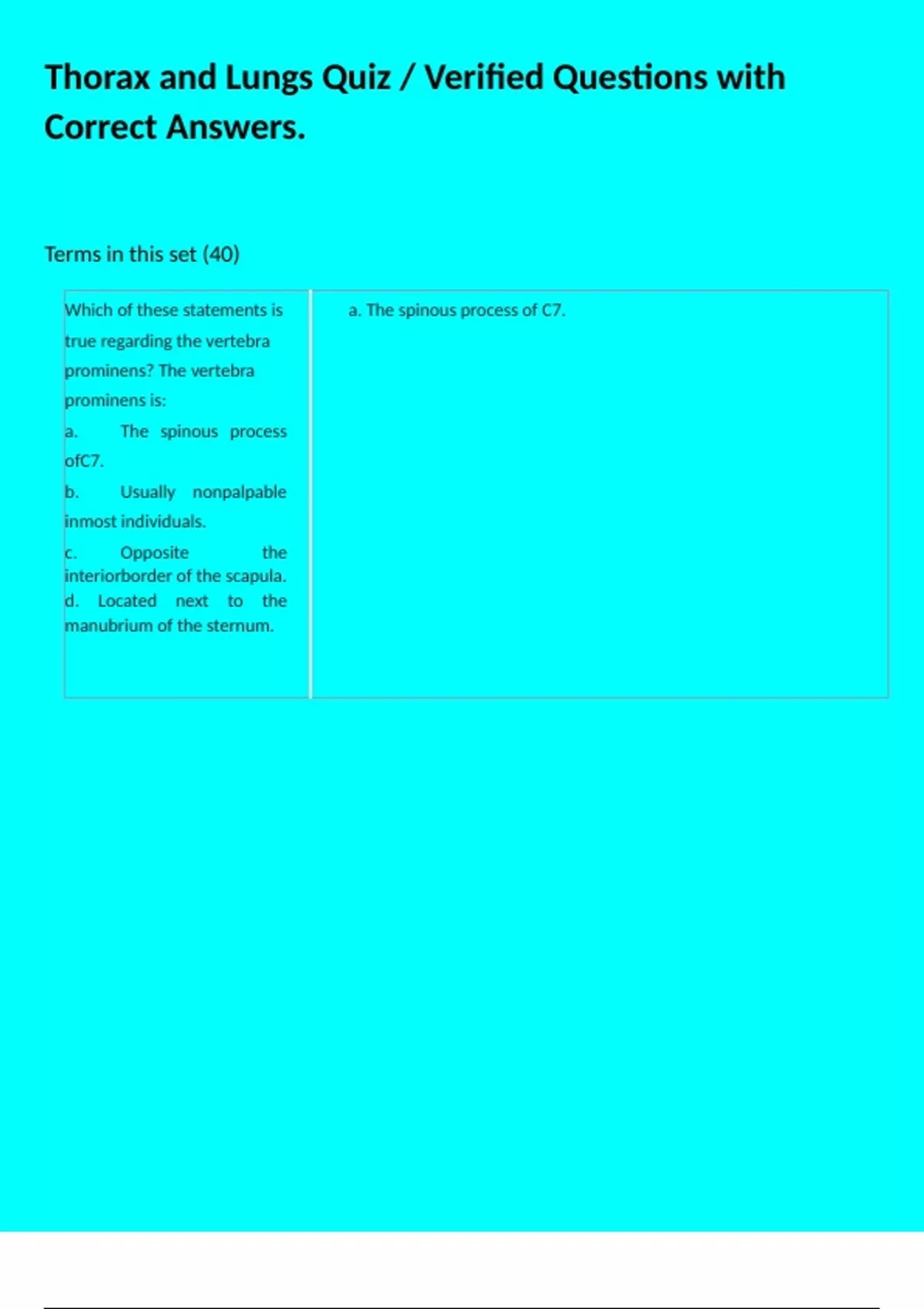 Thorax and Lungs Quiz / Verified Questions with Correct Answers.