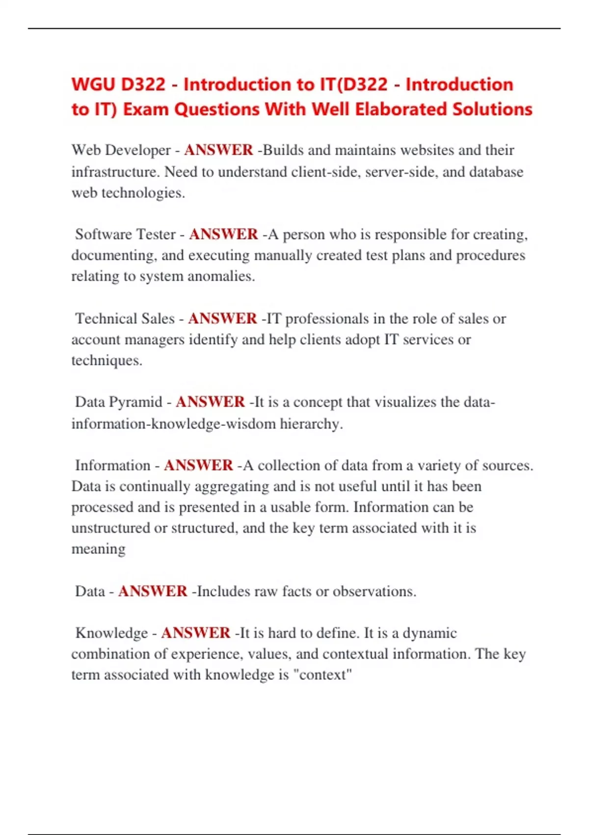 Knowledge - ANSWER -It is hard to define. It is a dynamic