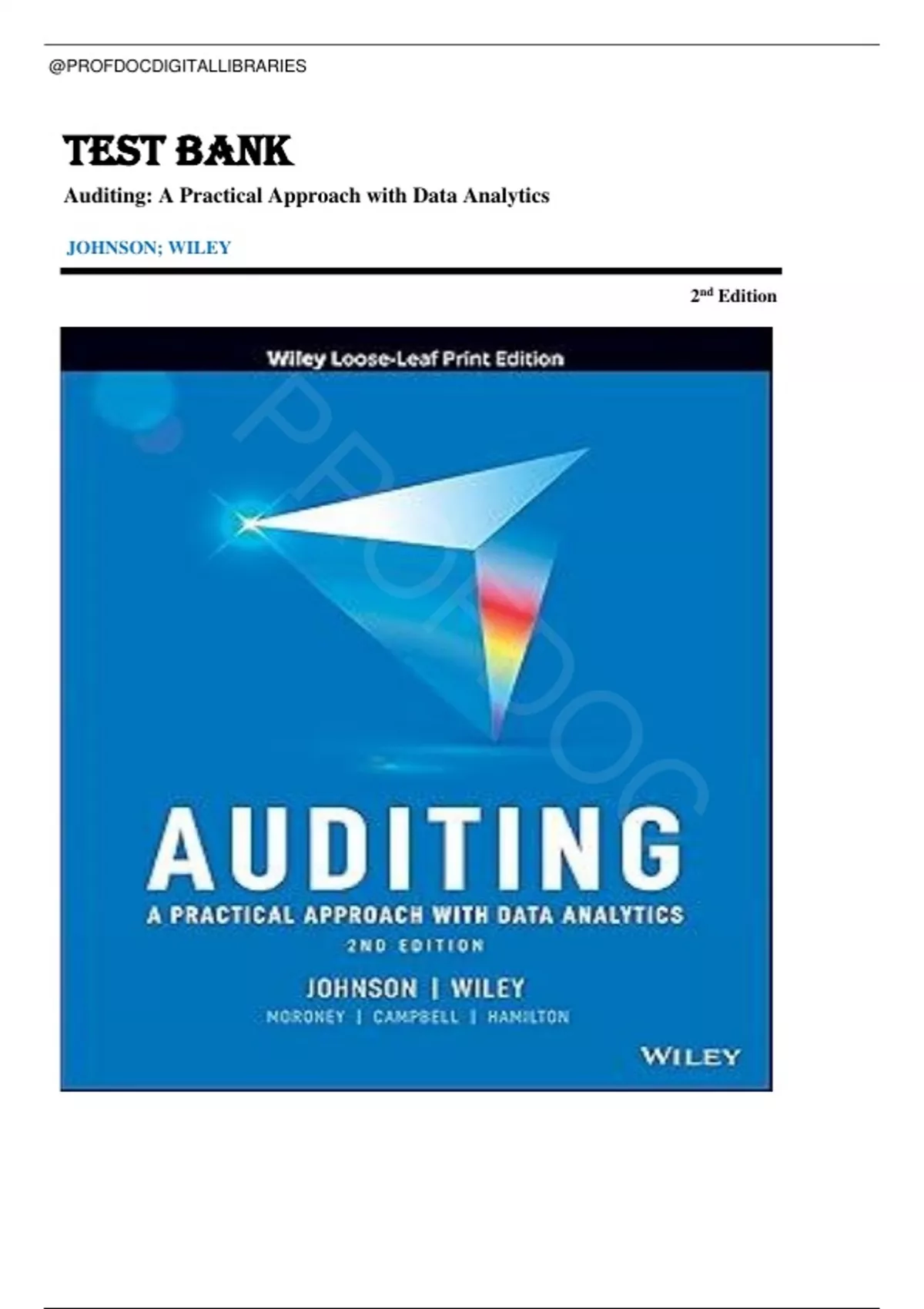 TEST BANK FOR Auditing: A Practical Approach with Data Analytics 2nd Edition by Raymond N. Johnson, Laura D. Wiley & Robyn Moroney , ISBN: 9781119785996 |All Chapters Verified| Guide A+