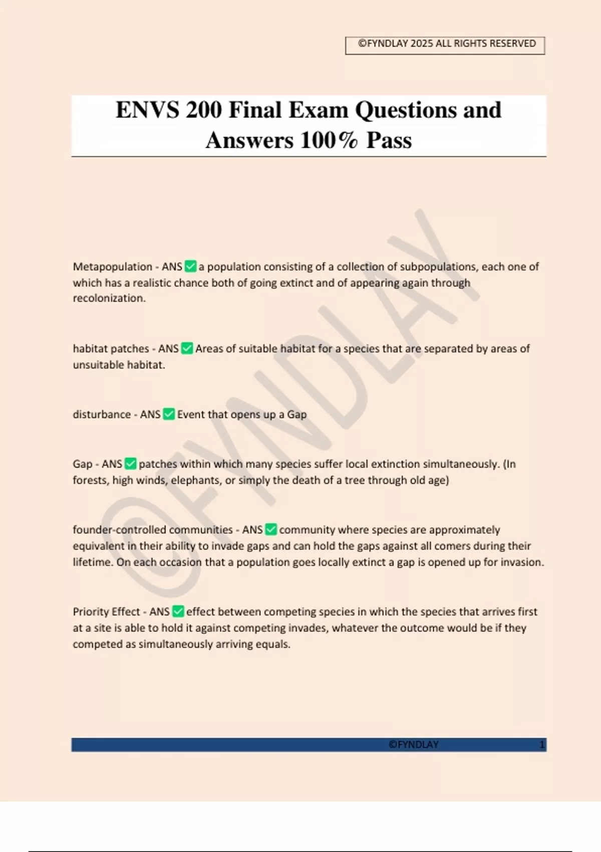 ENVS 200 Final Exam Questions and
