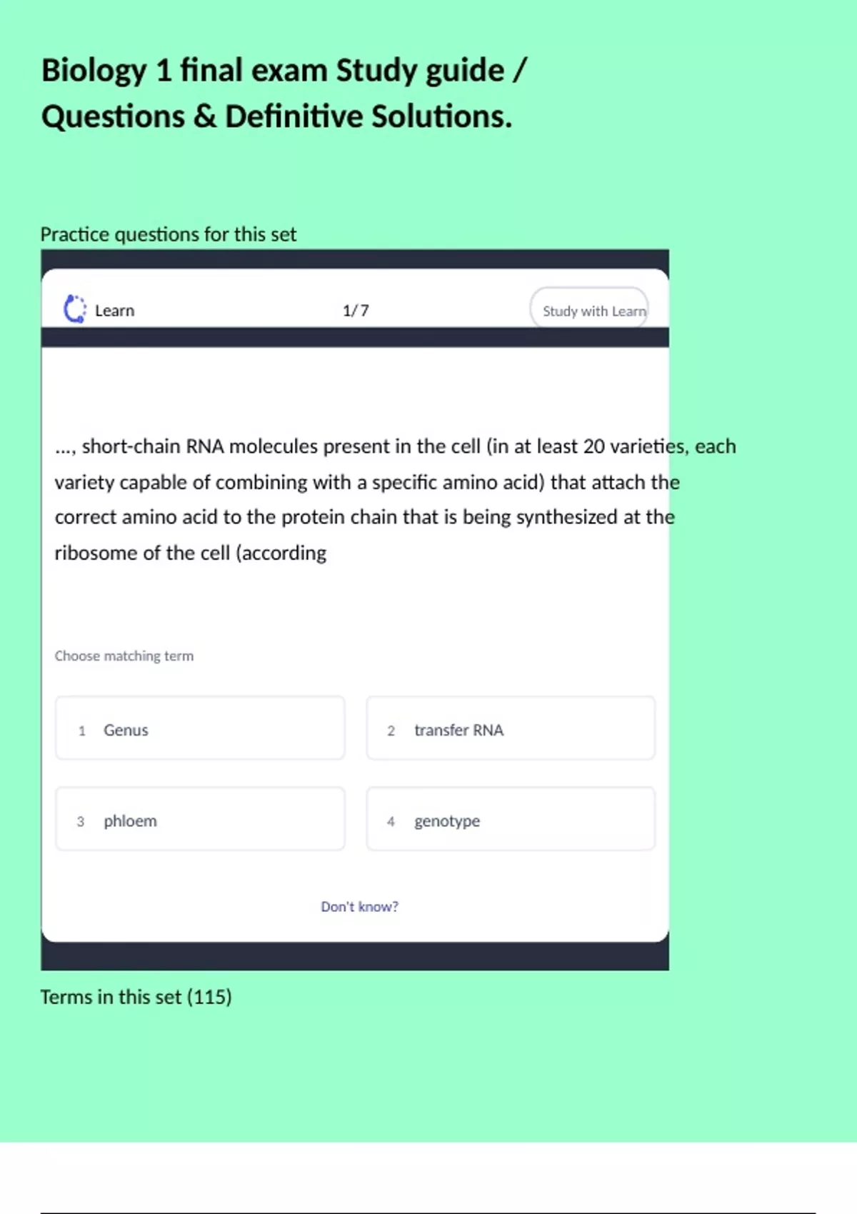 Biology 1 final exam Study guide / Questions & Definitive Solutions.