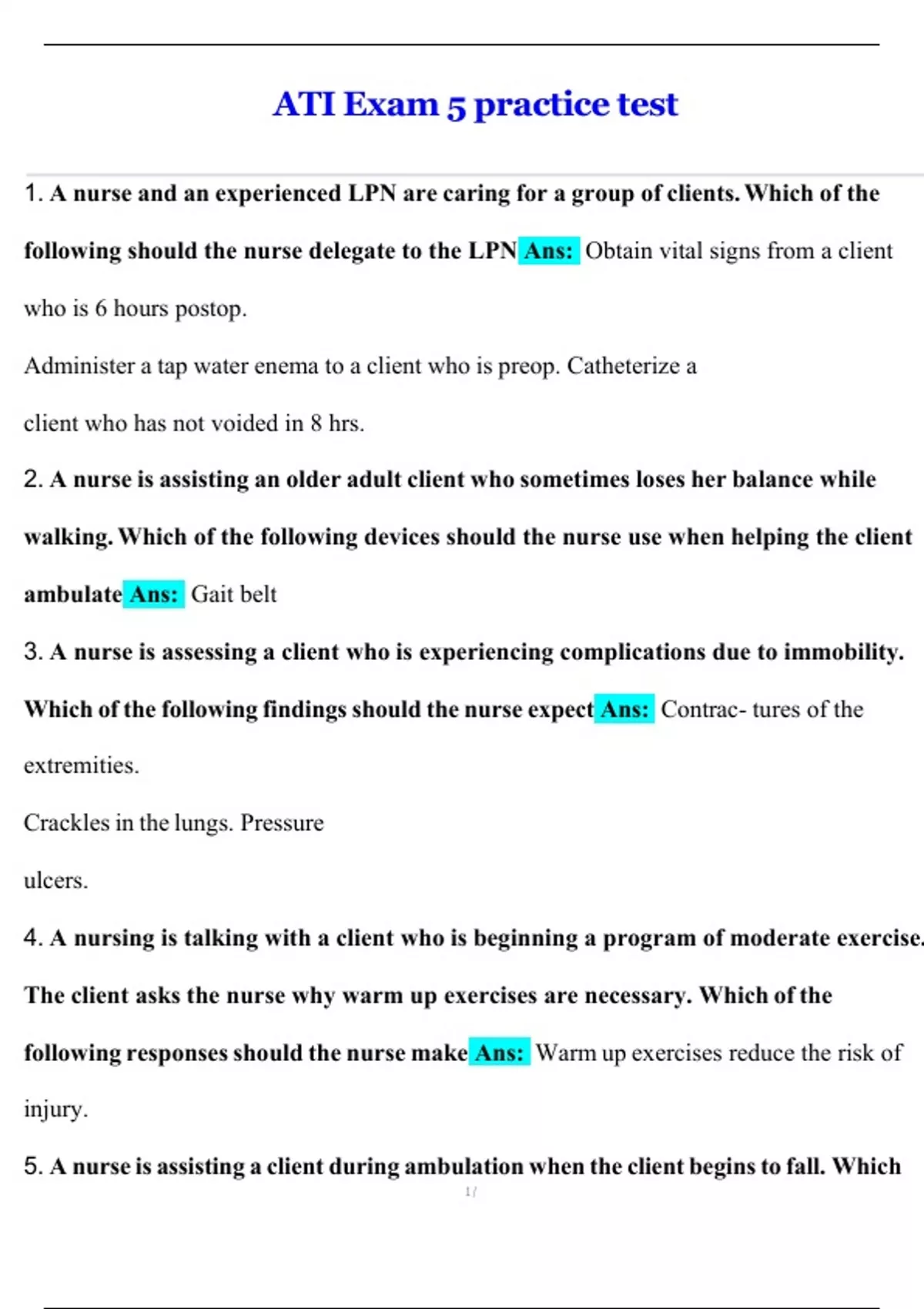ATI Exam 5 practice test