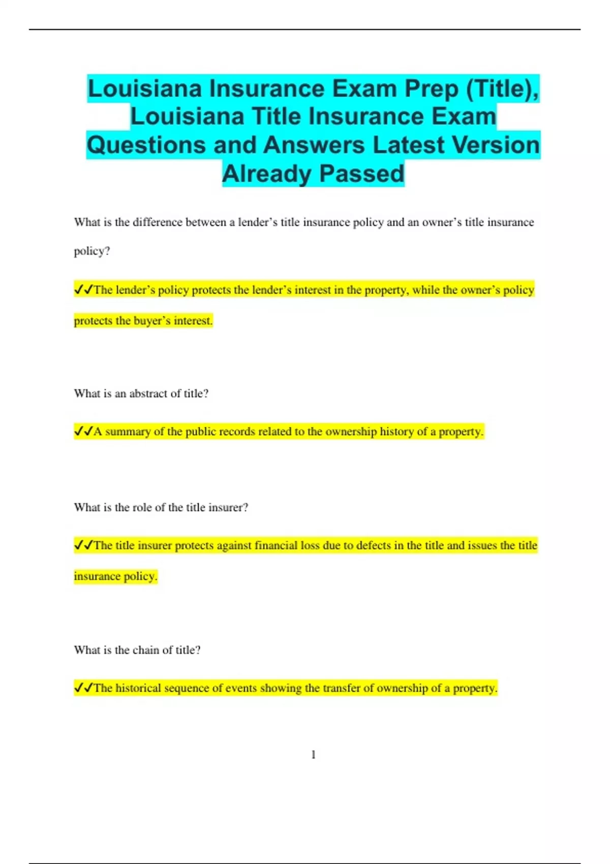 Louisiana Title Insurance Exam