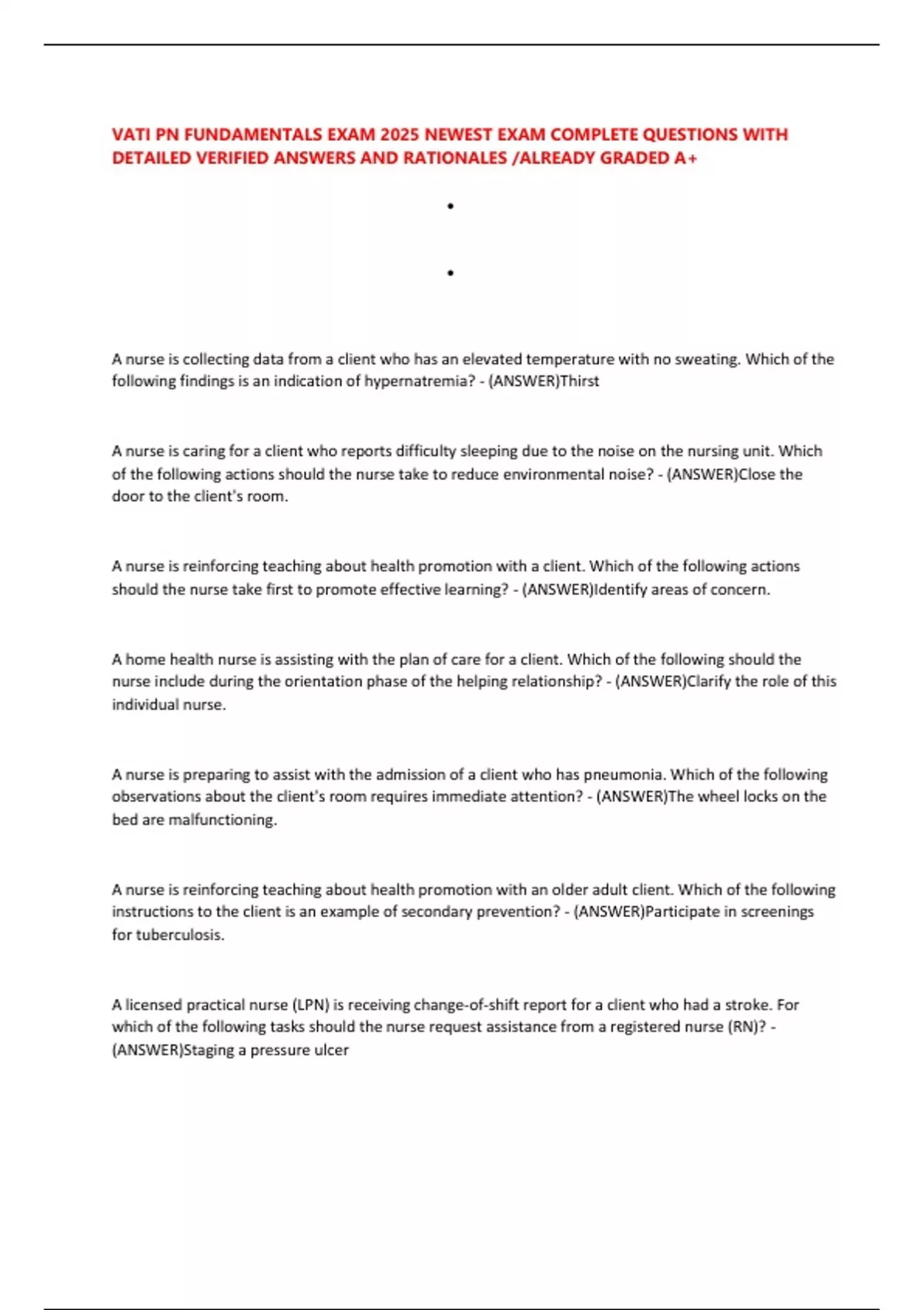 , VATI PN FUNDAMENTALS EXAM 2025 NEWEST EXAM COMPLETE QUESTIONS WITH