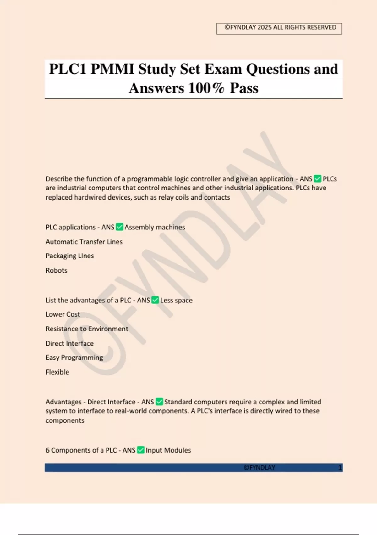 PLC1 PMMI Study Set Exam Questions and