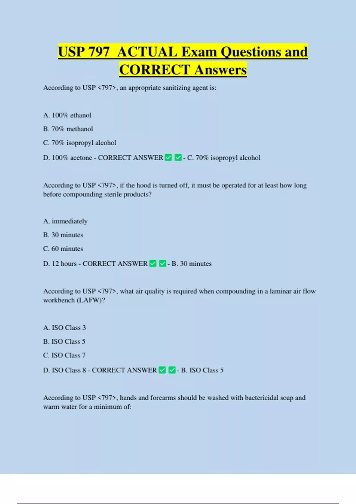 D. ISO Class 8 - CORRECT ANSWER - B. ISO Class 5