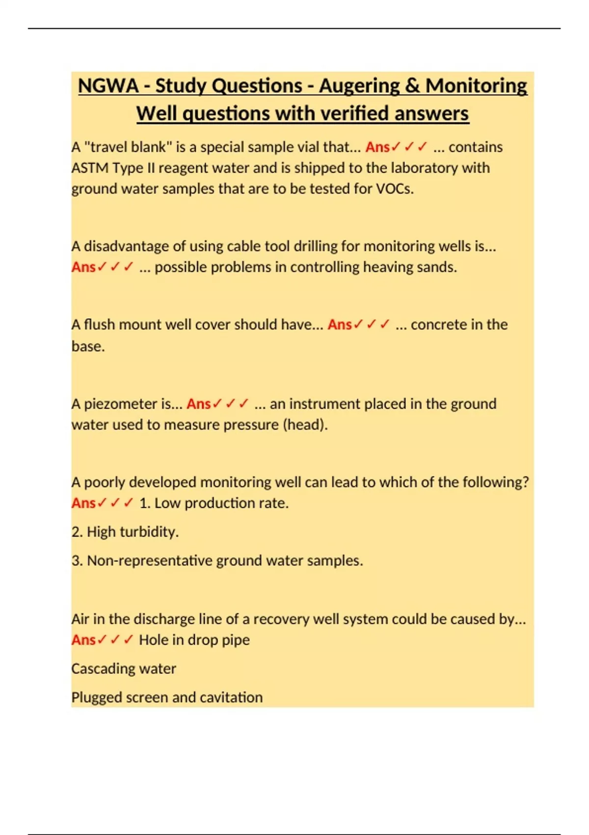Well questions with verified answers