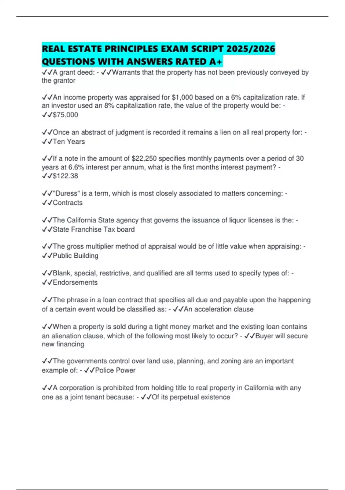 QUESTIONS WITH ANSWERS RATED A+