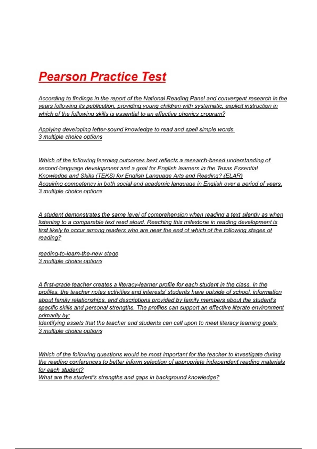 Pearson Practice Test Questions and Answers 2025/2026( A+ GRADED 100% VERIFIED).