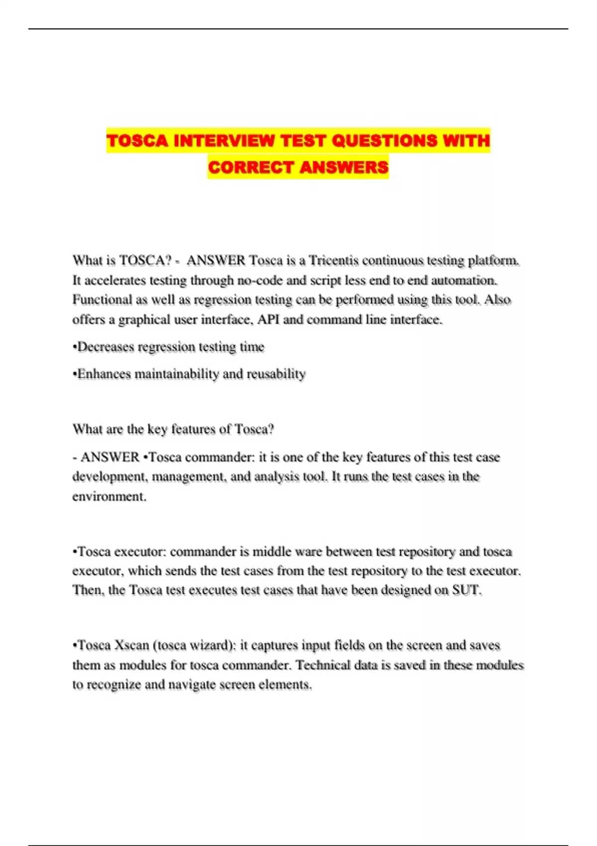TOSCA INTERVIEW TEST QUESTIONS WITH