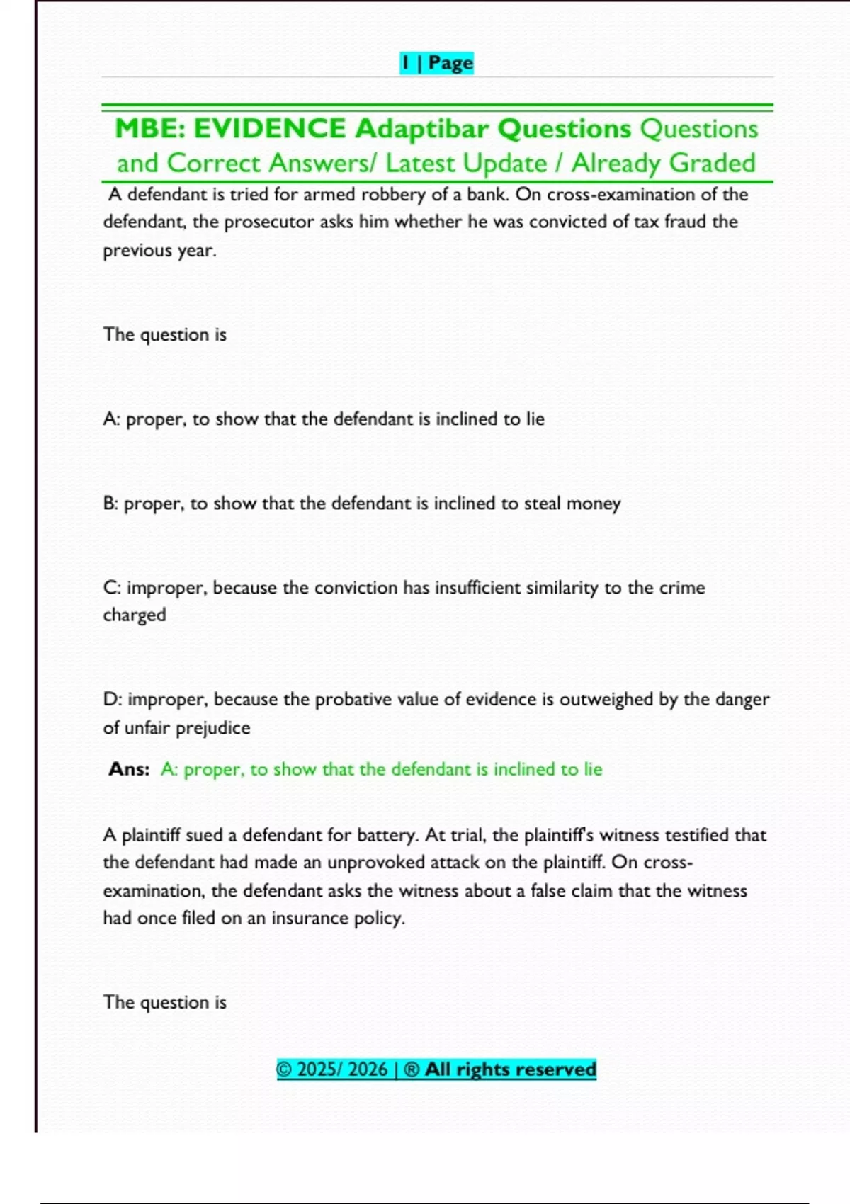 A defendant is tried for armed robbery of a bank. On cross-examination of the