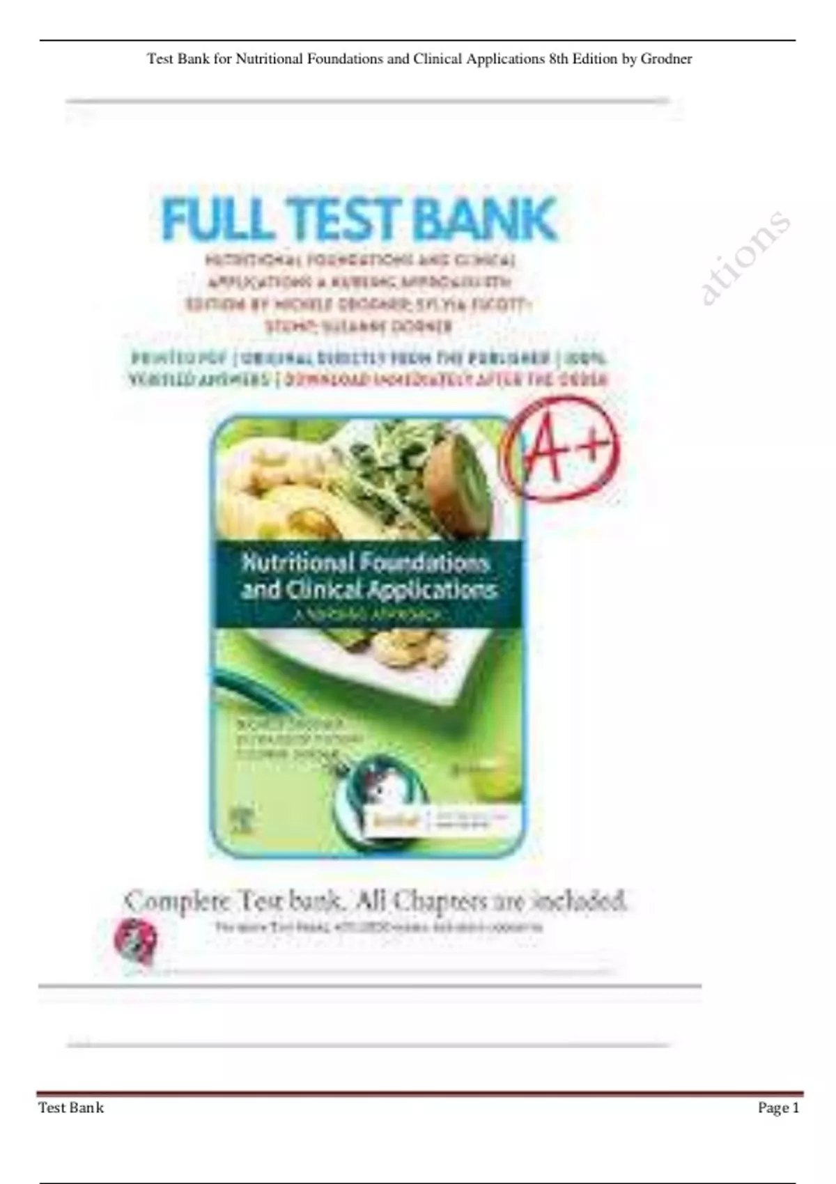 , Test Bank for Nutritional Foundations and Clinical Applications 8th Edition by Grodner