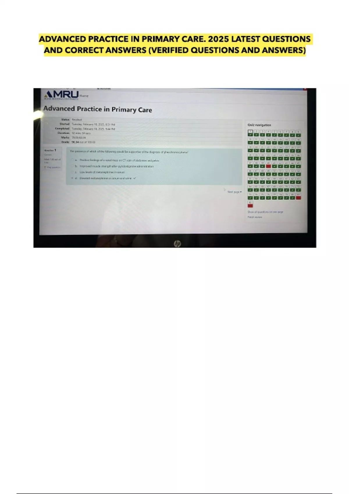 ADVANCED PRACTICE IN PRIMARY CARE 2025 LATEST QUESTIONS AND CORRECT ANSWERS.