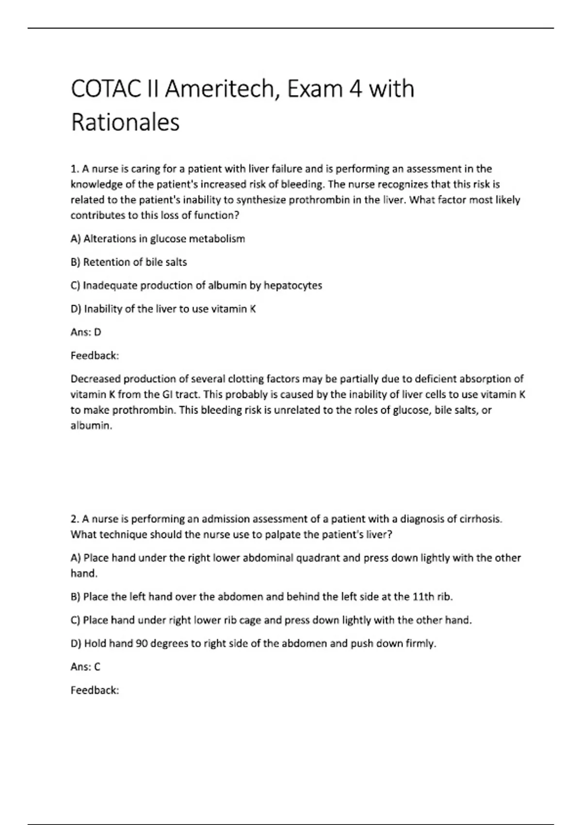 cotac ii ameritech exam 4 with rationales