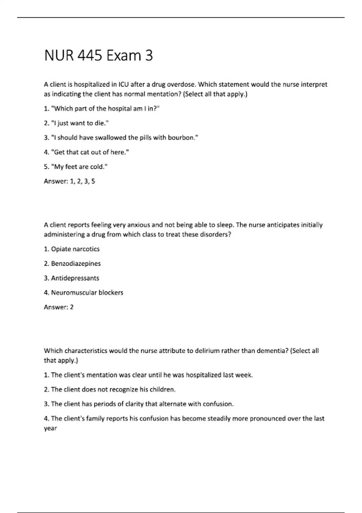 NUR 445 Exam 3 Questions (All correct answers, Already graded A+) Exam 2025/2026