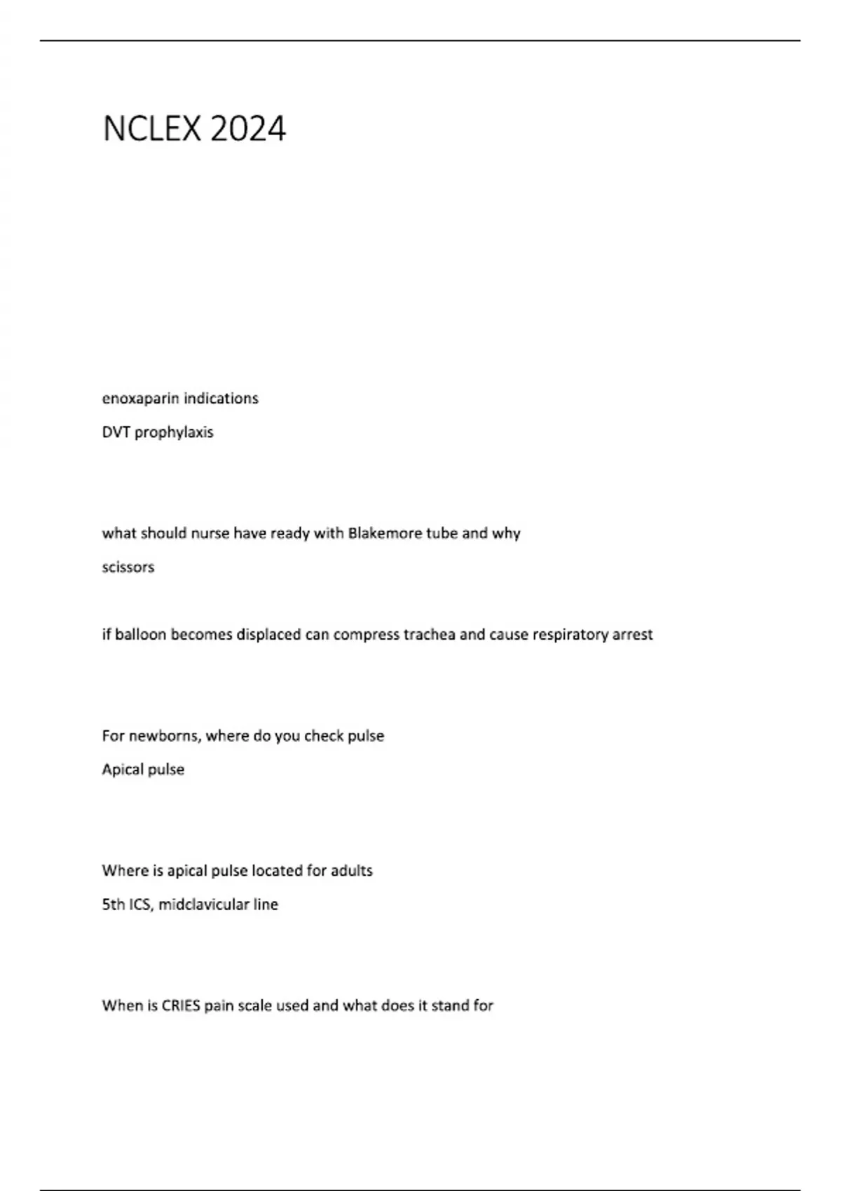 NCLEX 2024 Questions (All correct answers, Already graded A+) Exam 2025/2026