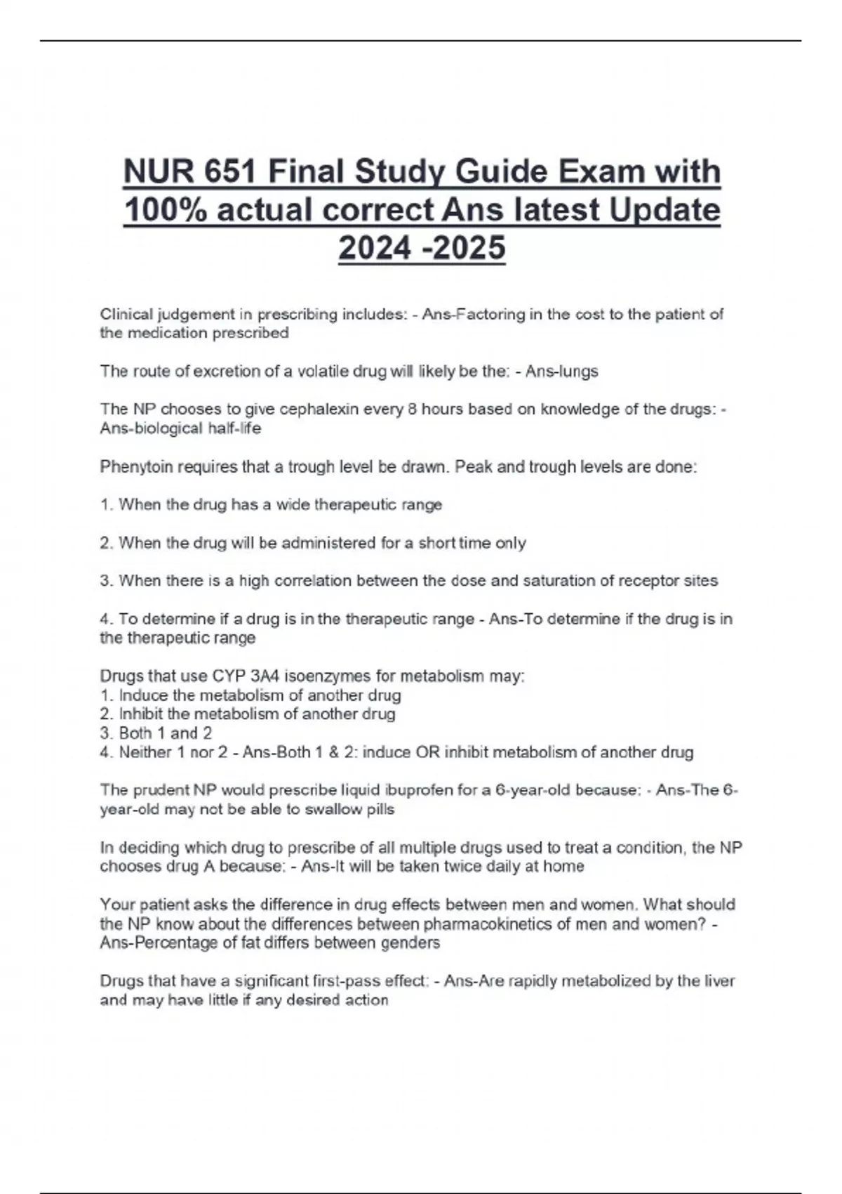 NUR 651 Final Study Guide Exam with 100% actual correct Ans latest Update