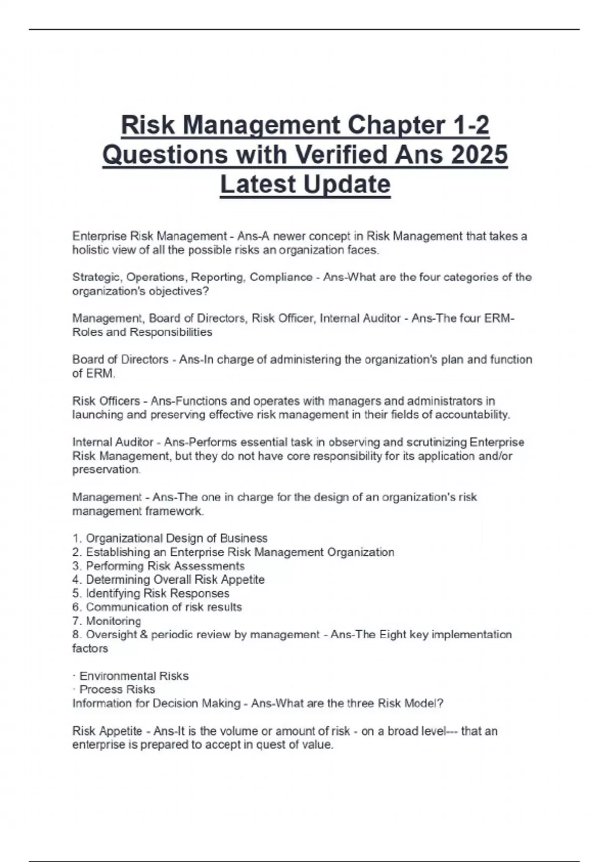 Risk Management Chapter 1-2 Questions with Verified Ans 2025 Latest Update