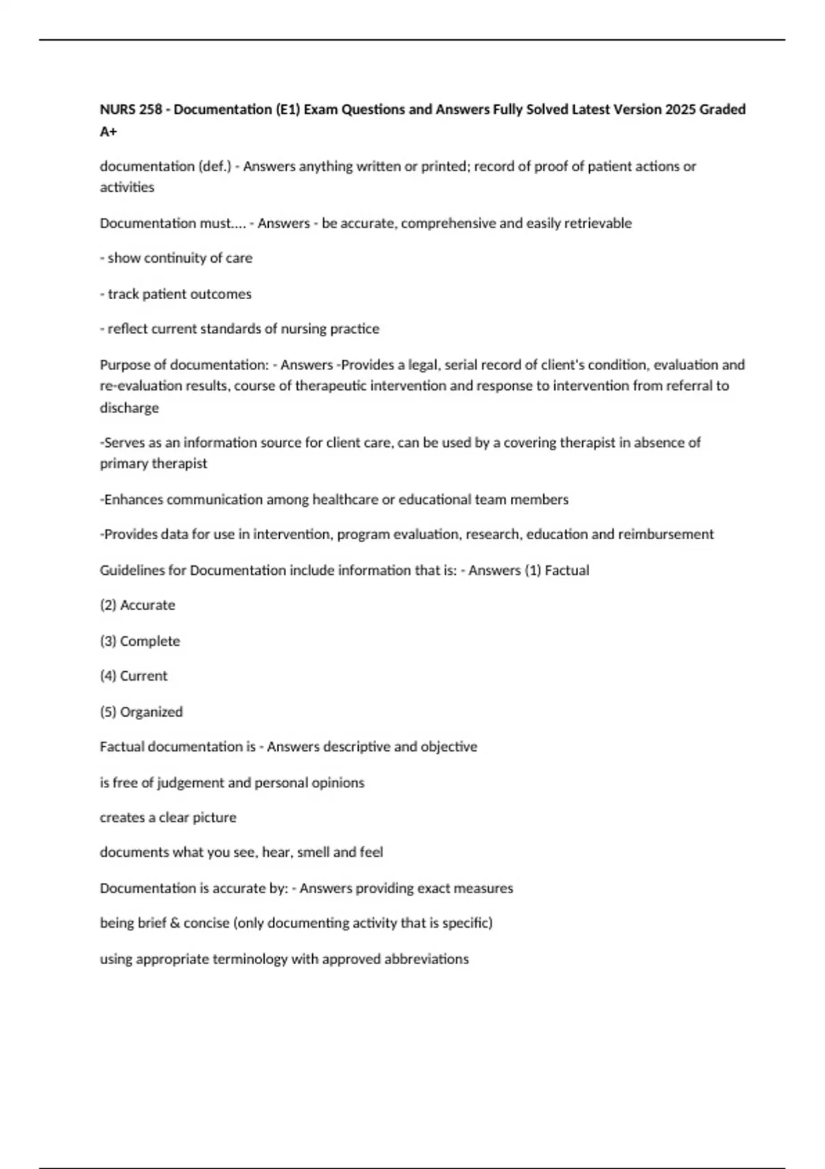 Guidelines for Documentation include information that is: - Answers (1) Factual