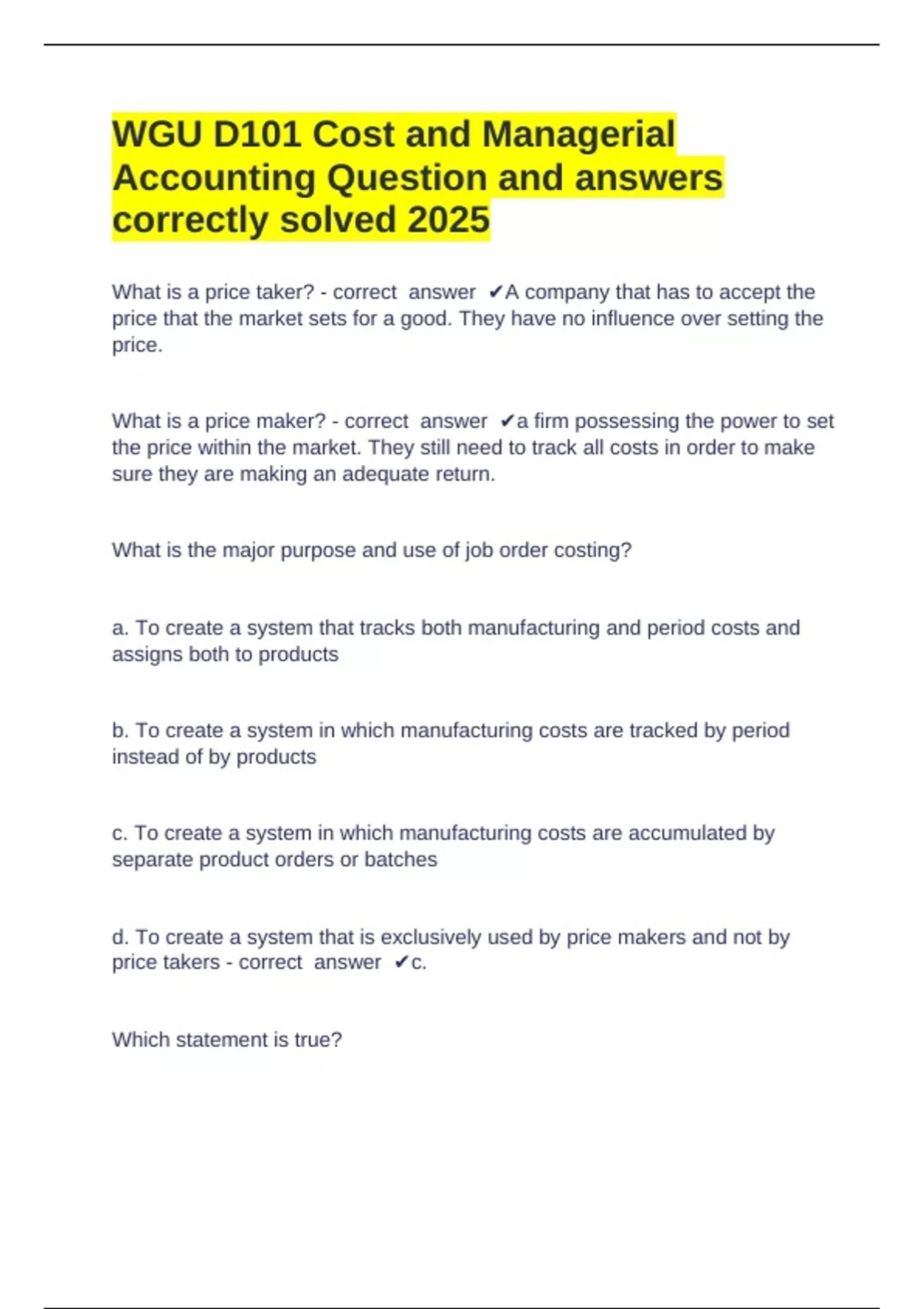 d. Identifying each specific job or product manufactured - correct answer ✔d.