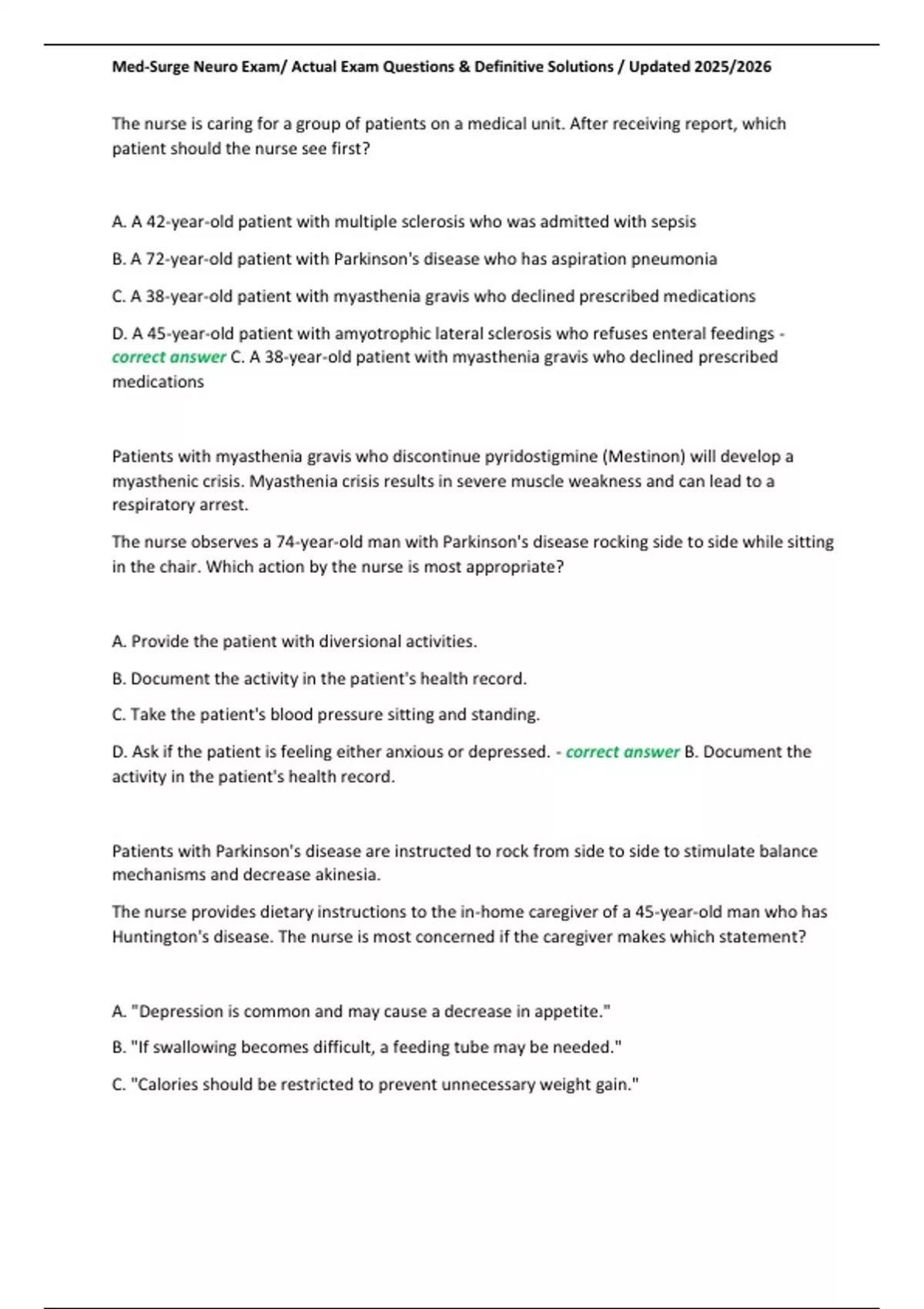 ,Med-Surge Neuro Exam/ Actual Exam Questions & Definitive Solutions / Updated 2025/2026