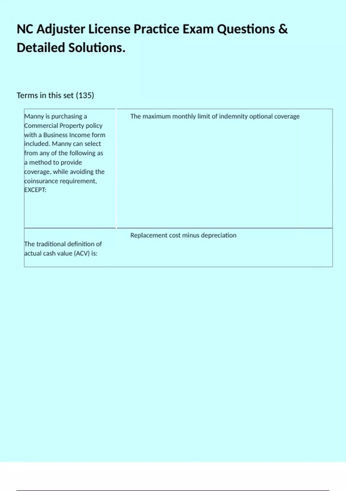 NC Adjuster License Practice Exam Questions & Detailed Solutions.