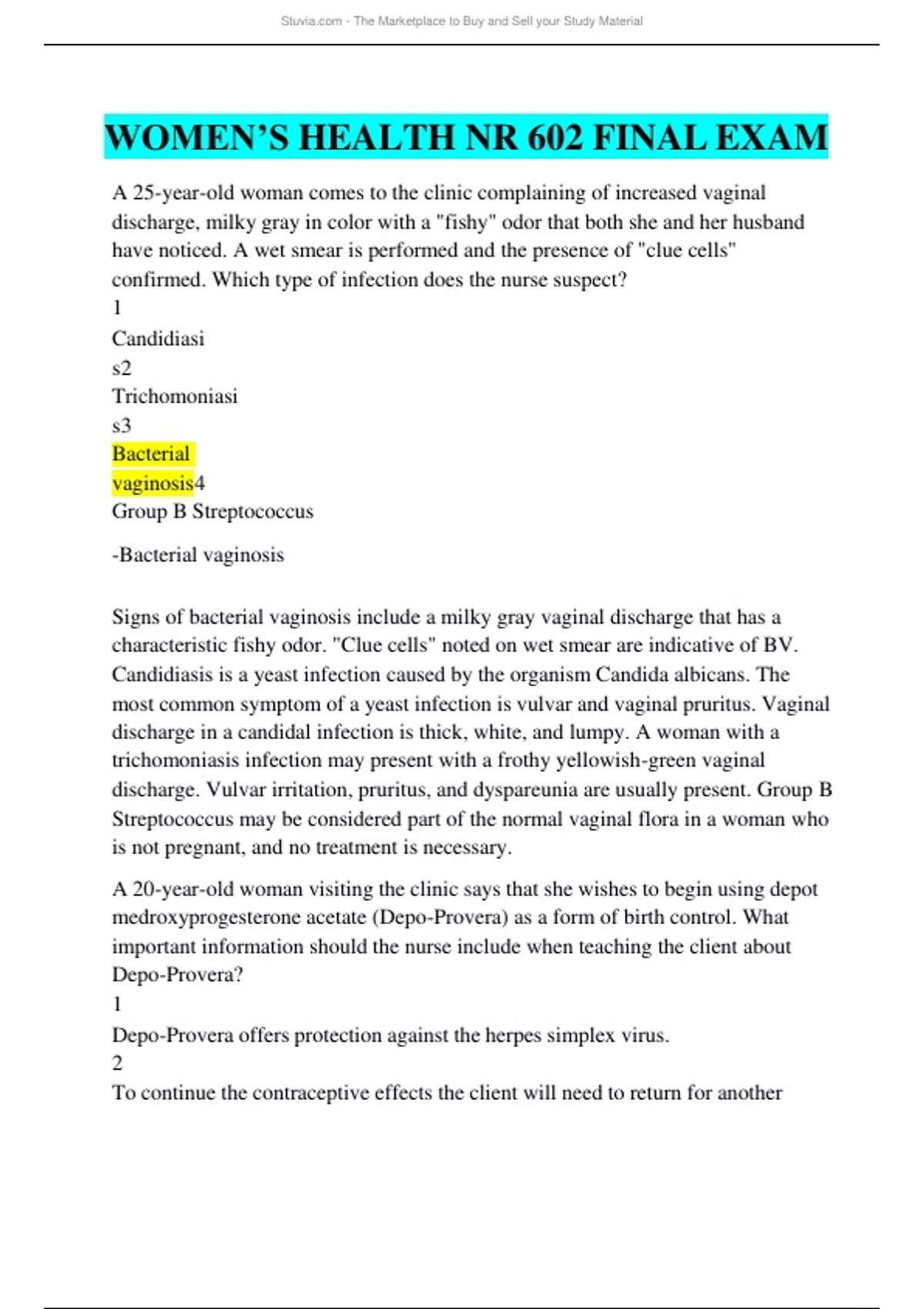 WOMEN’S HEALTH NR 602 FINAL EXAM
