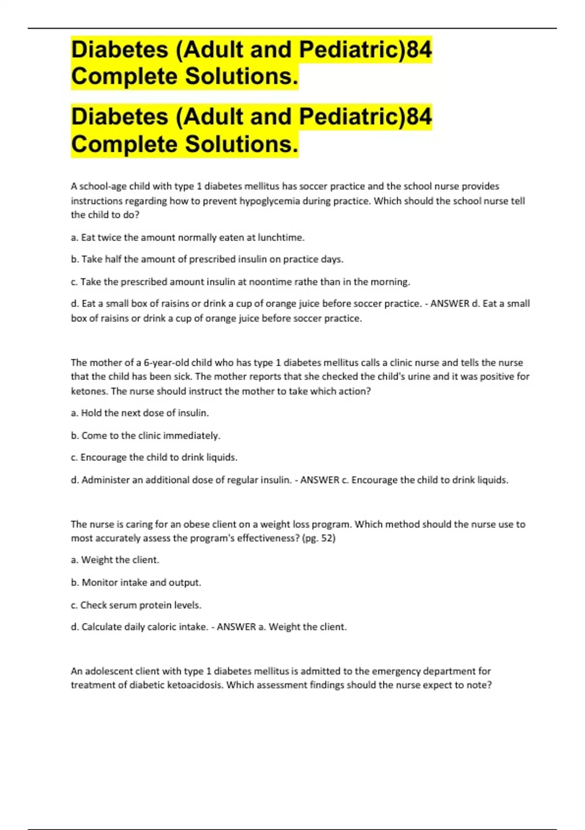 d. Administer an additional dose of regular insulin. - ANSWER c. Encourage the child to drink liquids.