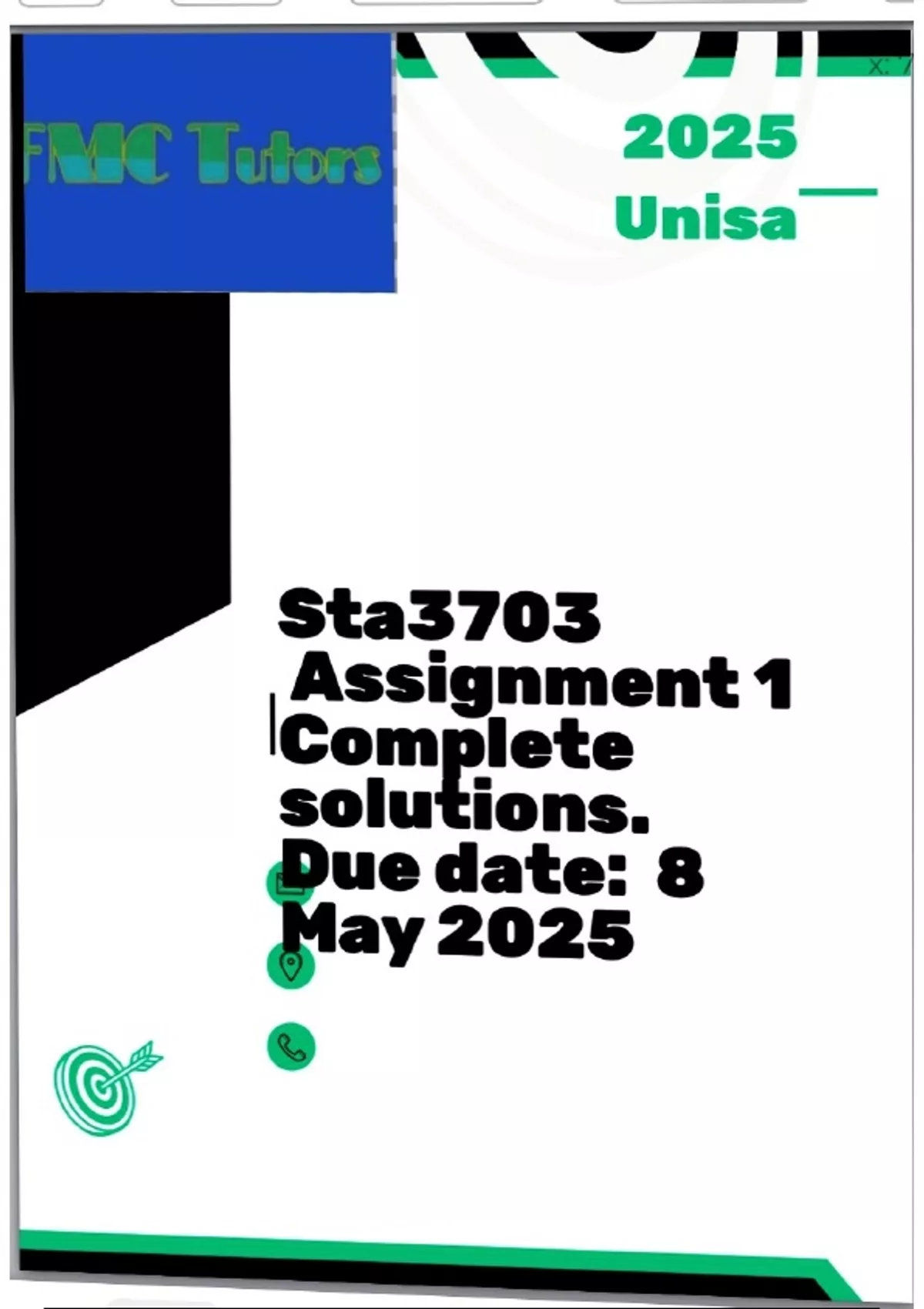 STA3703 assignment 1 completed detailed solutions 2025 Unisa . One of the best solution document showing each step and extra calculations from question 1 to question 8 . Excellent marks guaranteed and also great explanations of each question .