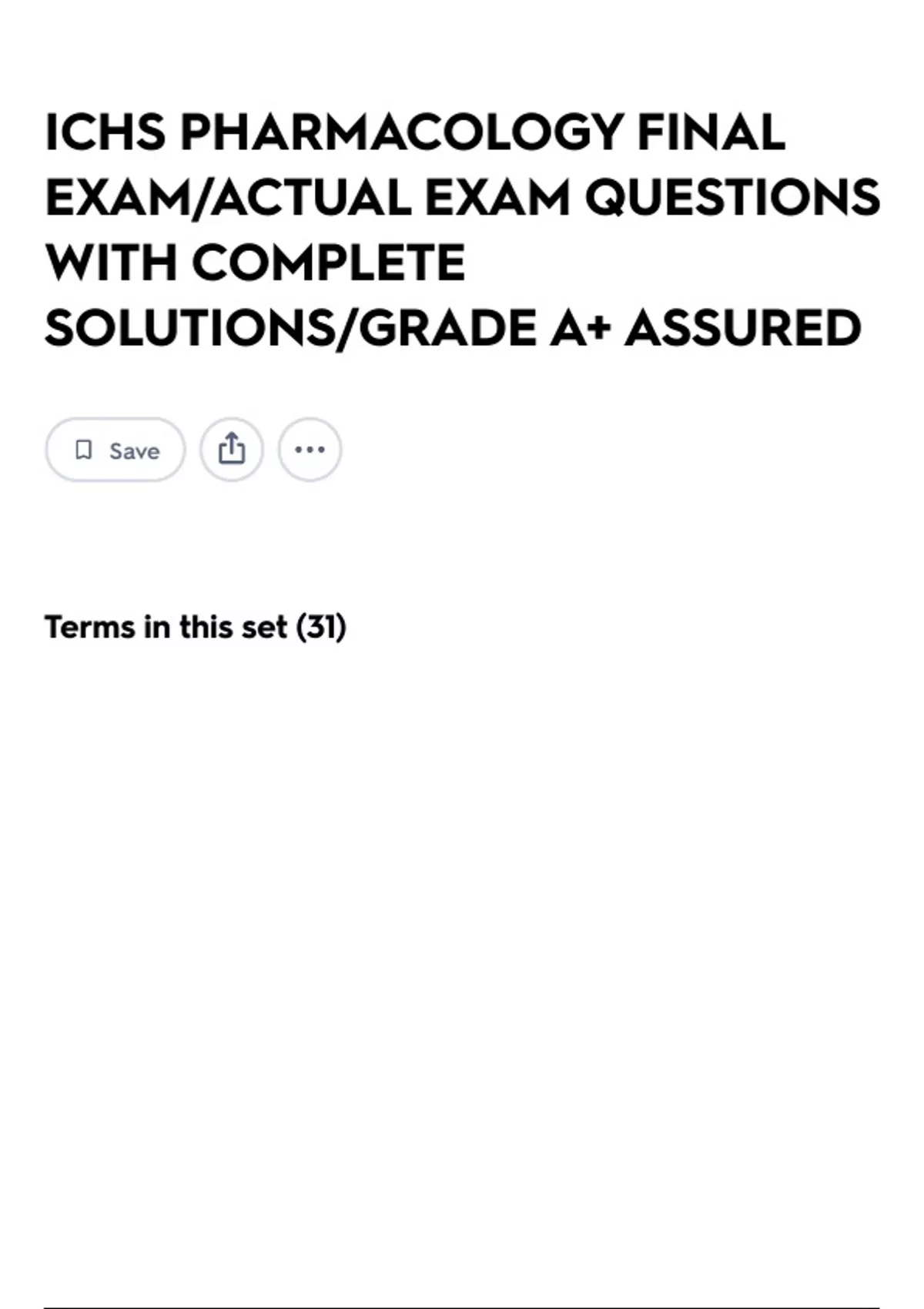 ICHS PHARMACOLOGY FINAL EXAM/ACTUAL EXAM QUESTIONS WITH COMPLETE SOLUTIONS/GRADE A+ ASSURED
