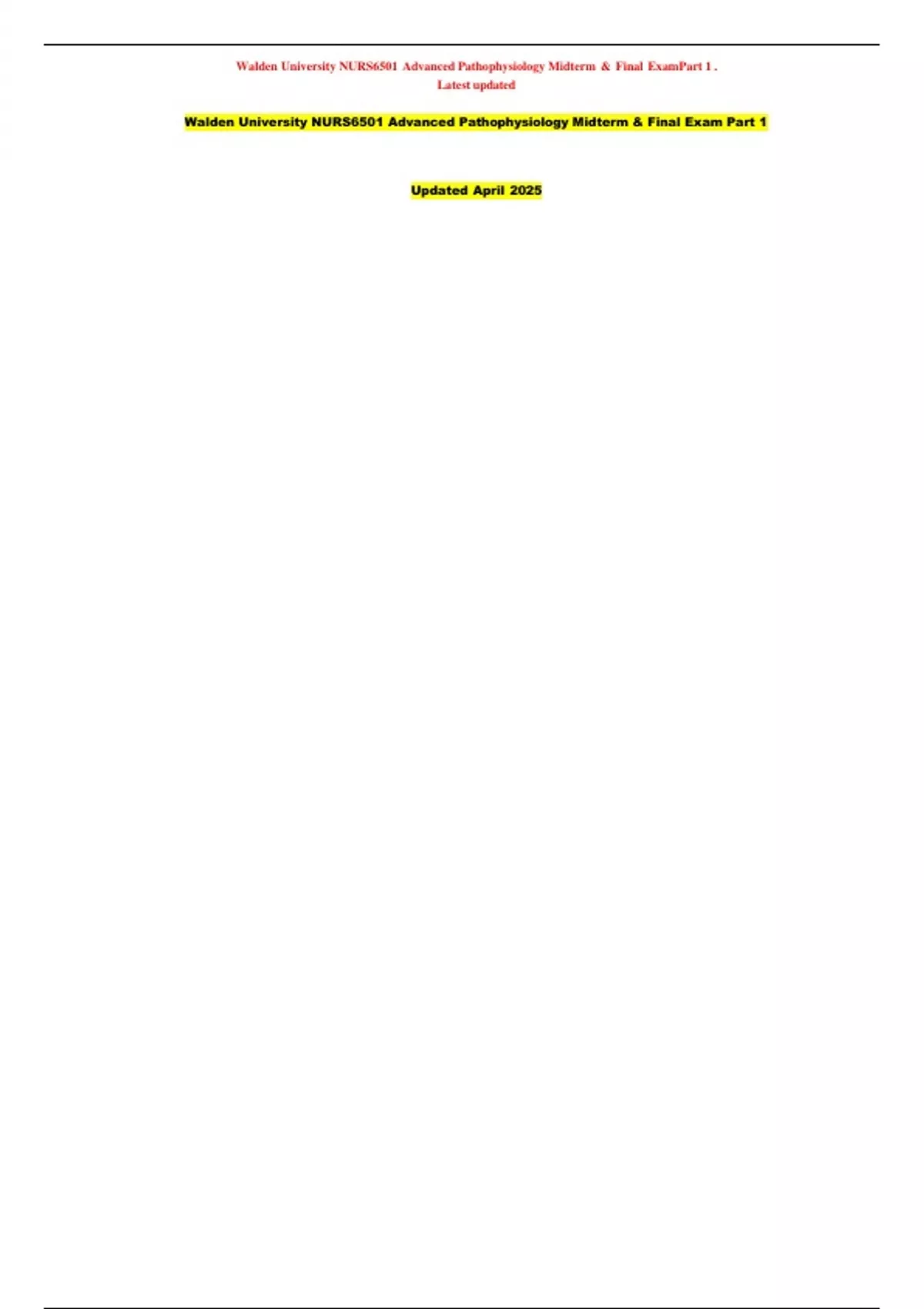 and review of the NURS 6501 Mid-term and Final exams. This document is not intended for