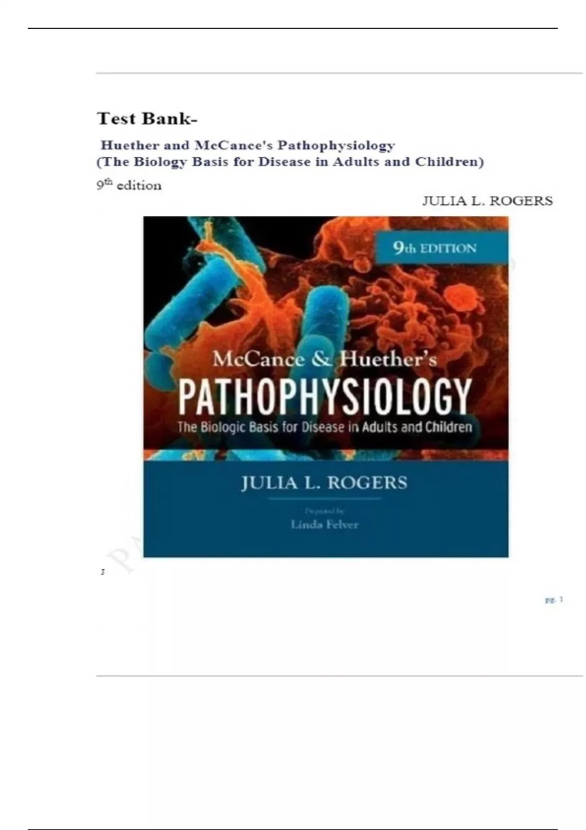 Test Bank For Huether and McCance's Pathophysiology. The Biology Basis For Disease In Adults and Childern 9th Edition By Julia L. Rogers