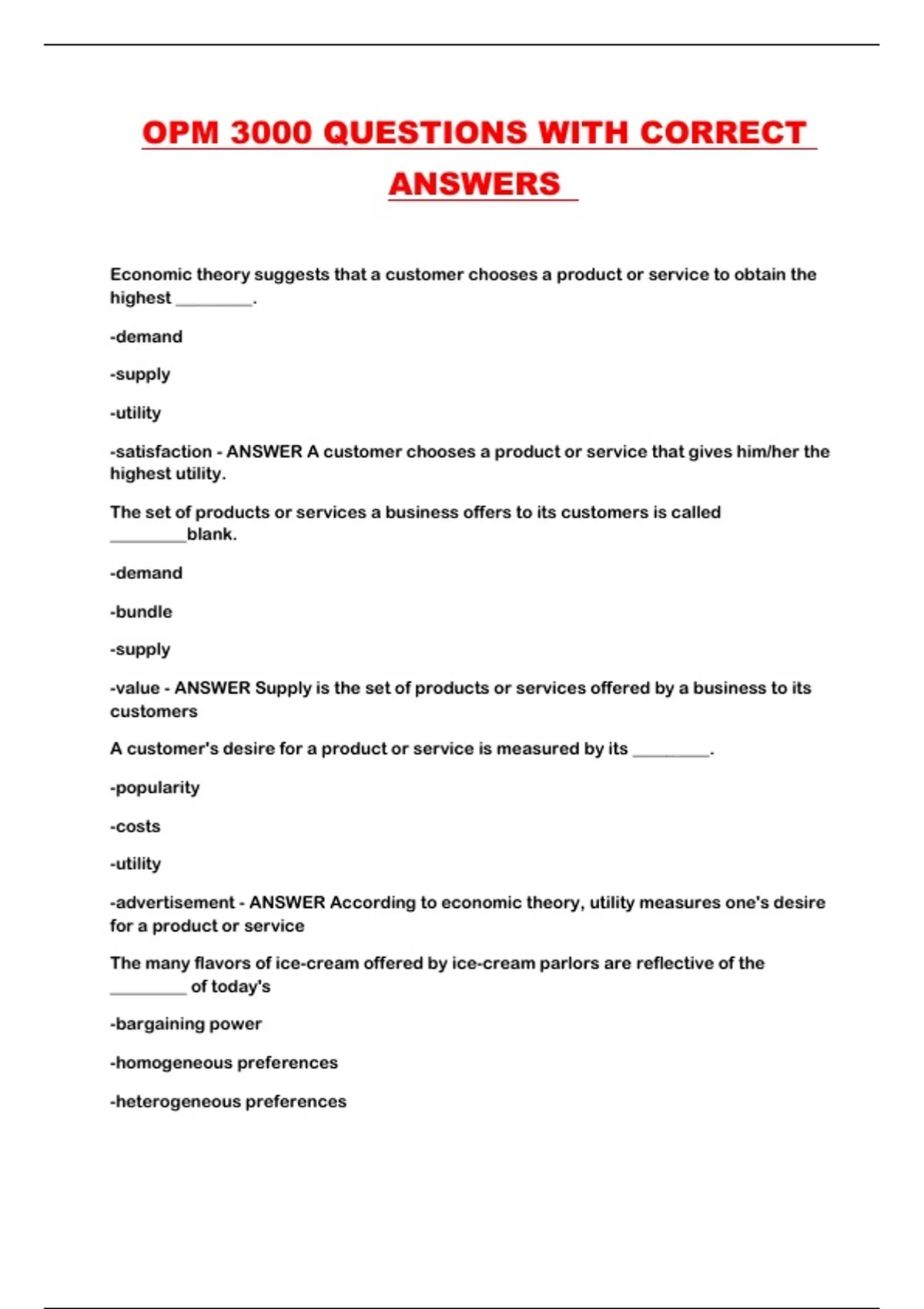 OPM 3000 QUESTIONS WITH CORRECT