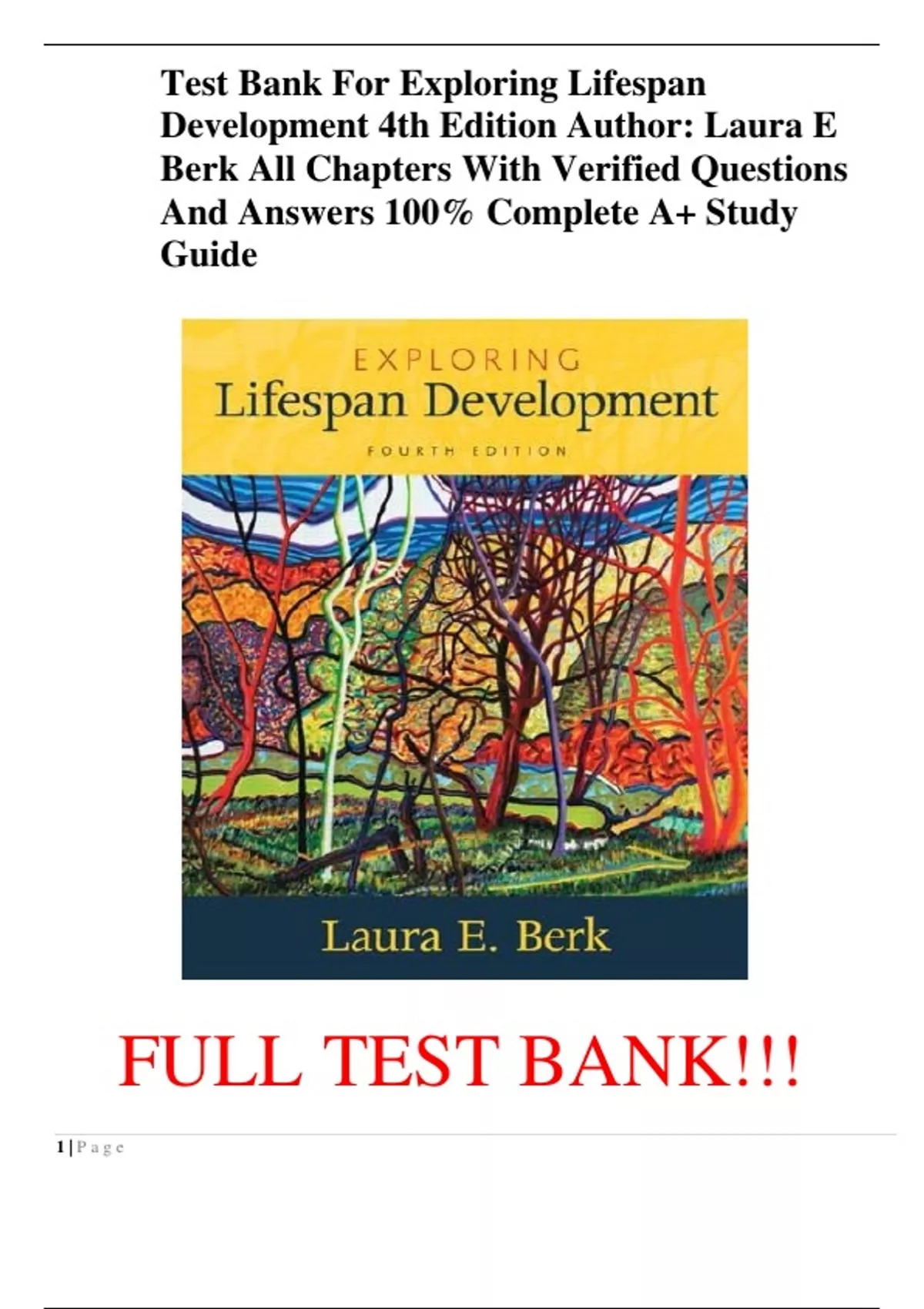 Test Bank For Exploring Lifespan Development 4th Edition Author: Laura E Berk All Chapters With Verified Questions And Answers 100% Complete A+ Study Guide