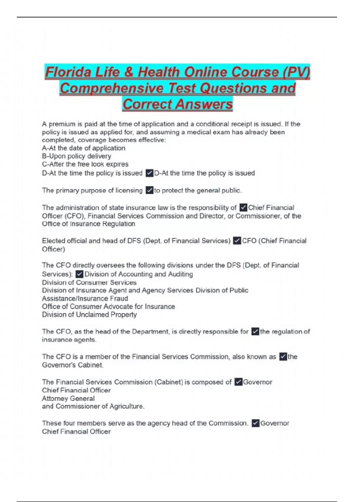 Florida Life & Health Online Course (PV) Comprehensive Test Questions and Correct Answers