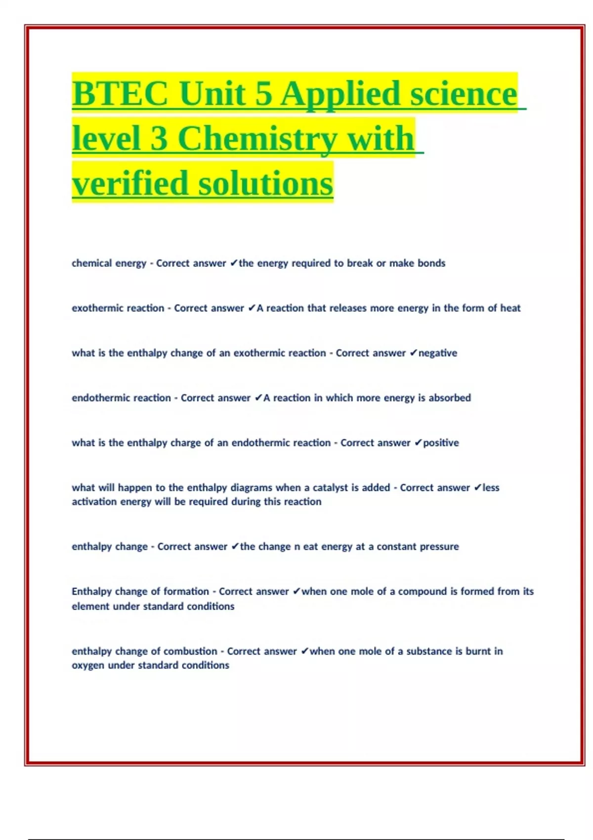 enthalpy change - Correct answer ✔the change n eat energy at a constant pressure