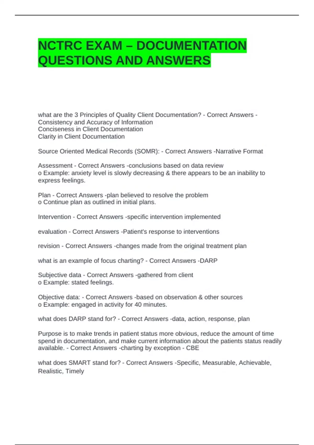 NCTRC EXAM – DOCUMENTATION QUESTIONS AND ANSWERS
